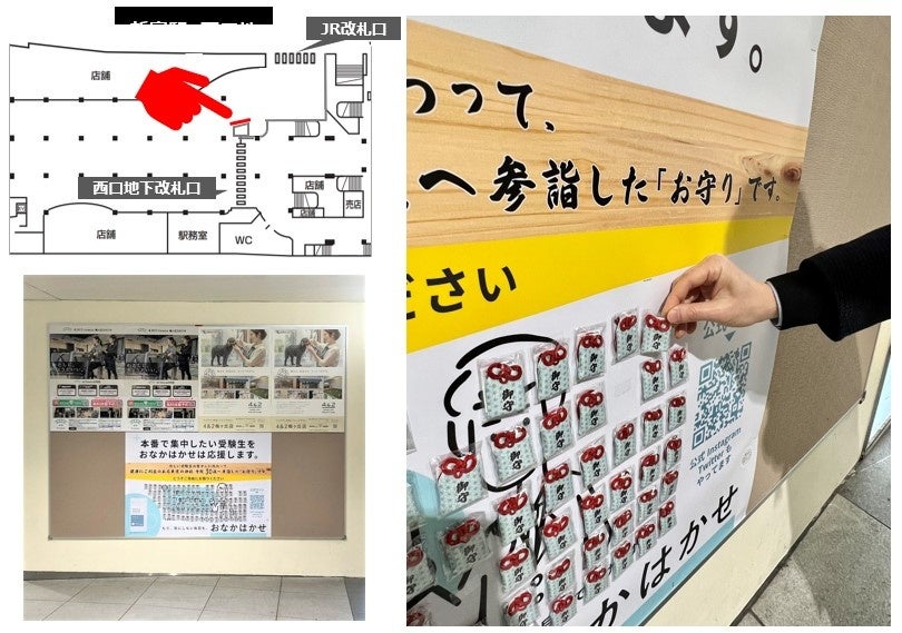 ポスターに貼り付けるオリジナルお守りは、弊社プロジェクトメンバーが東京都の神社30社に持参し、受験生が勉強や試験に集中できるようにと合格祈願を行っております。受験を控えた学生の方、対象となるお子様をお持ちの親御様や知り合いの方など幅広い方々にお守りをお持ち帰りいただくことで少しでもお役に立てれば幸いです