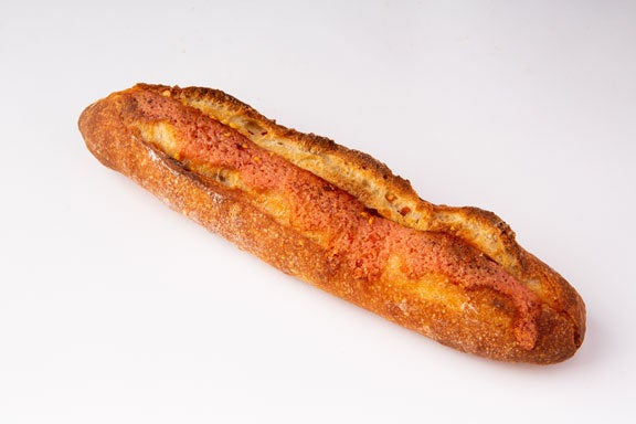 バゲット生地にガーリックの効いた特製明太子バターをたっぷり挟み、香ばしく焼き上げました。ビールが進む一品です!
