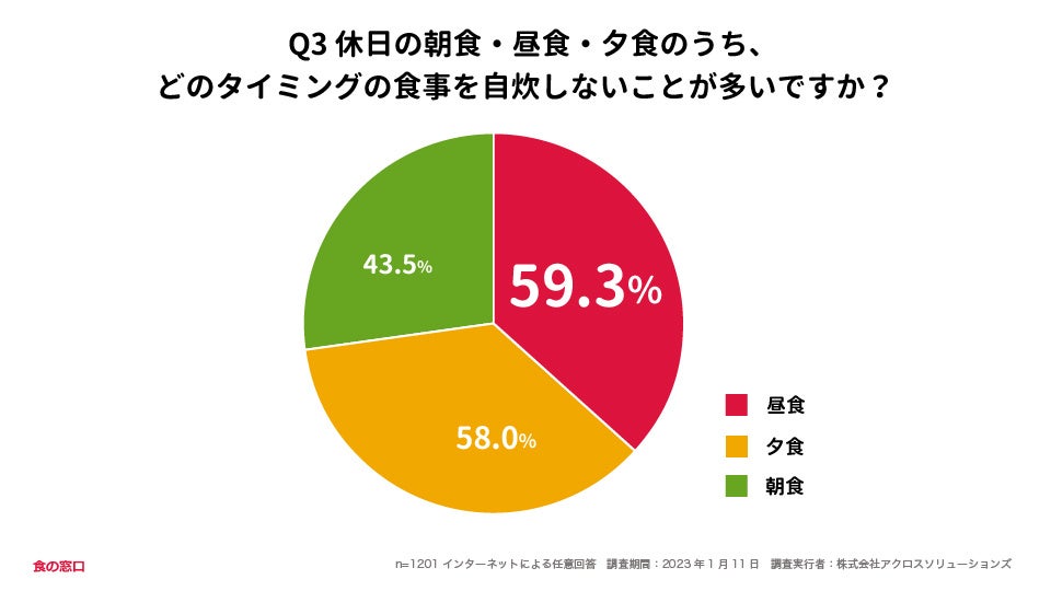 Q3 休日の自炊しないタイミングは「昼食」が59.3%で一番多い。