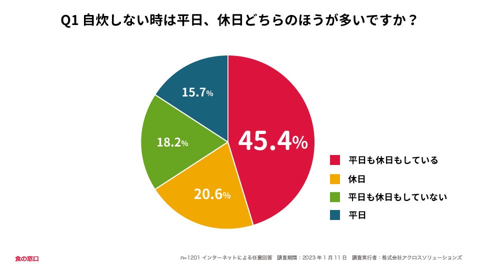 そこで、株式会社アクロスソリューションズと一般社団法人 日本唐揚協会が共同運営している食の窓口(URL:https://karaage.ne.jp/contents/ )は、20歳〜59歳の男女1201人を対象に「平日と休日の自炊に関するアンケート調査」を実施しました。