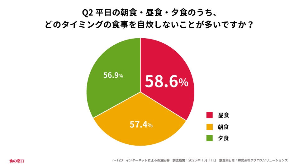 Q2 平日の自炊しないタイミングは「昼食」が58.6%で一番多い。