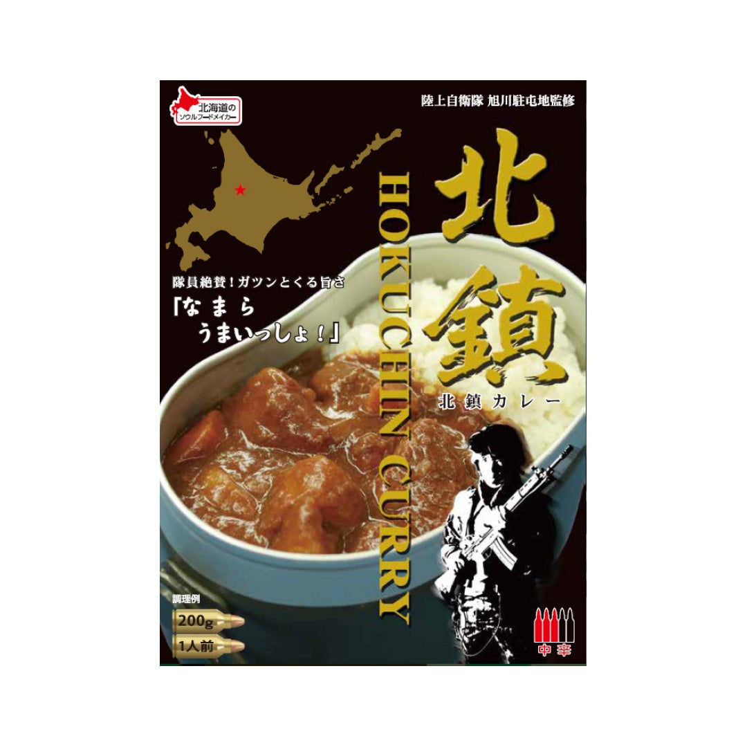 北海道の陸上自衛隊駐屯地の中で隊員No.1の人気を誇るカレーを、旭川駐屯地監修のもと、レトルトカレーで再現した「北鎮カレー」。