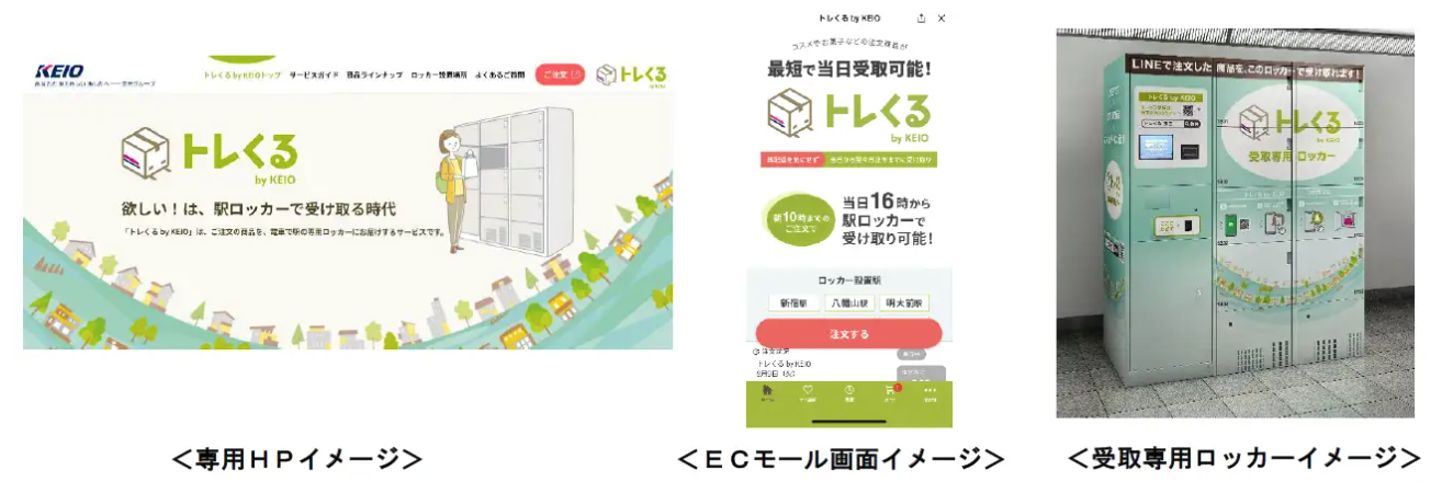 「電車(トレイン)で商品が届く(来る)」をイメージして名付けられた「トレくる」は、LINE上の専用ECモール「トレくる by KEIO」で注文した商品を、駅にある専用ロッカーで受け取れるサービスです。朝10時までのご注文で最短当日16時頃から受け取ることができ、最大7日先までの予約が可能です。商品は鉄道を活用して配送することで、環境面にも配慮しています。