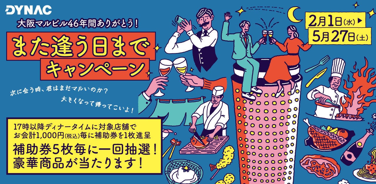 株式会社ダイナックホールディングスの子会社である株式会社ダイック(本社:東京都港区 代表取締役社長:秋山武史)は大阪マルビルの改築に伴い閉店する7店舗を対象に「大阪マルビル46年間ありがとう!また逢う日までキャンペーン」を開催いたします。