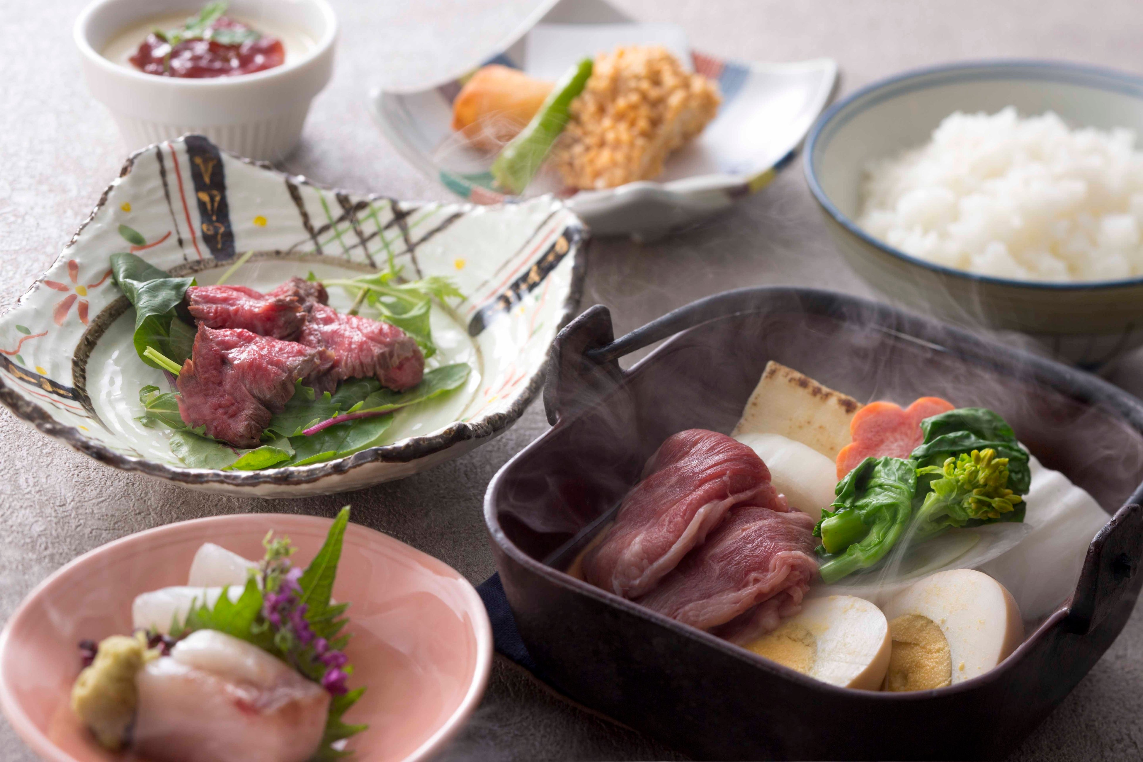 サシが細かく入った上質な神戸ビーフを「しゃぶしゃぶ」か「すき焼き」で愉しめるコース。しゃぶしゃぶは神戸産緑茶葉を煮出しただしでさっぱりと。すき焼きは灘の甘酒を使った割下でキレ良く。神戸ビーフの圧倒的な旨みをご堪能ください。