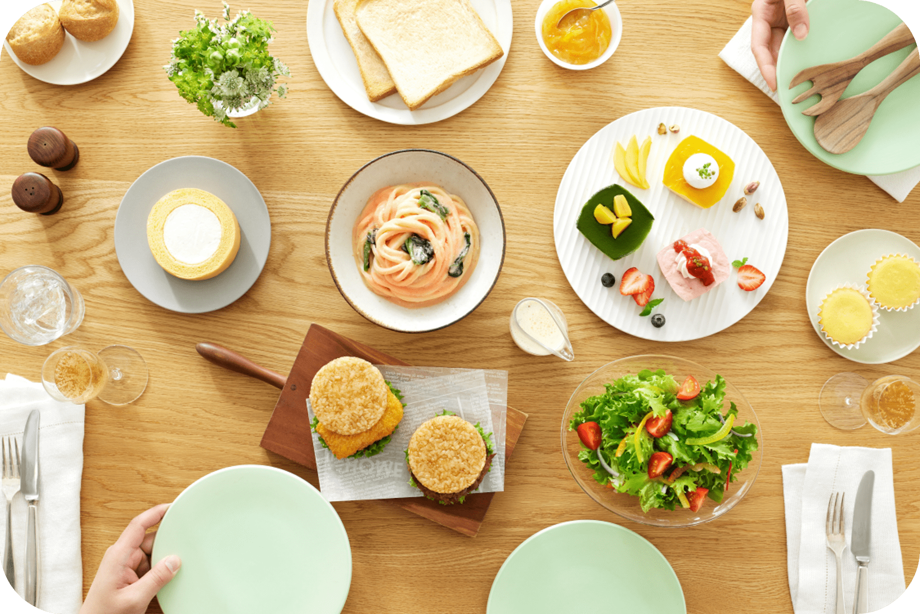 動物性原材料を使わずに、植物由来の原材料で仕上げたプラントベースの商品