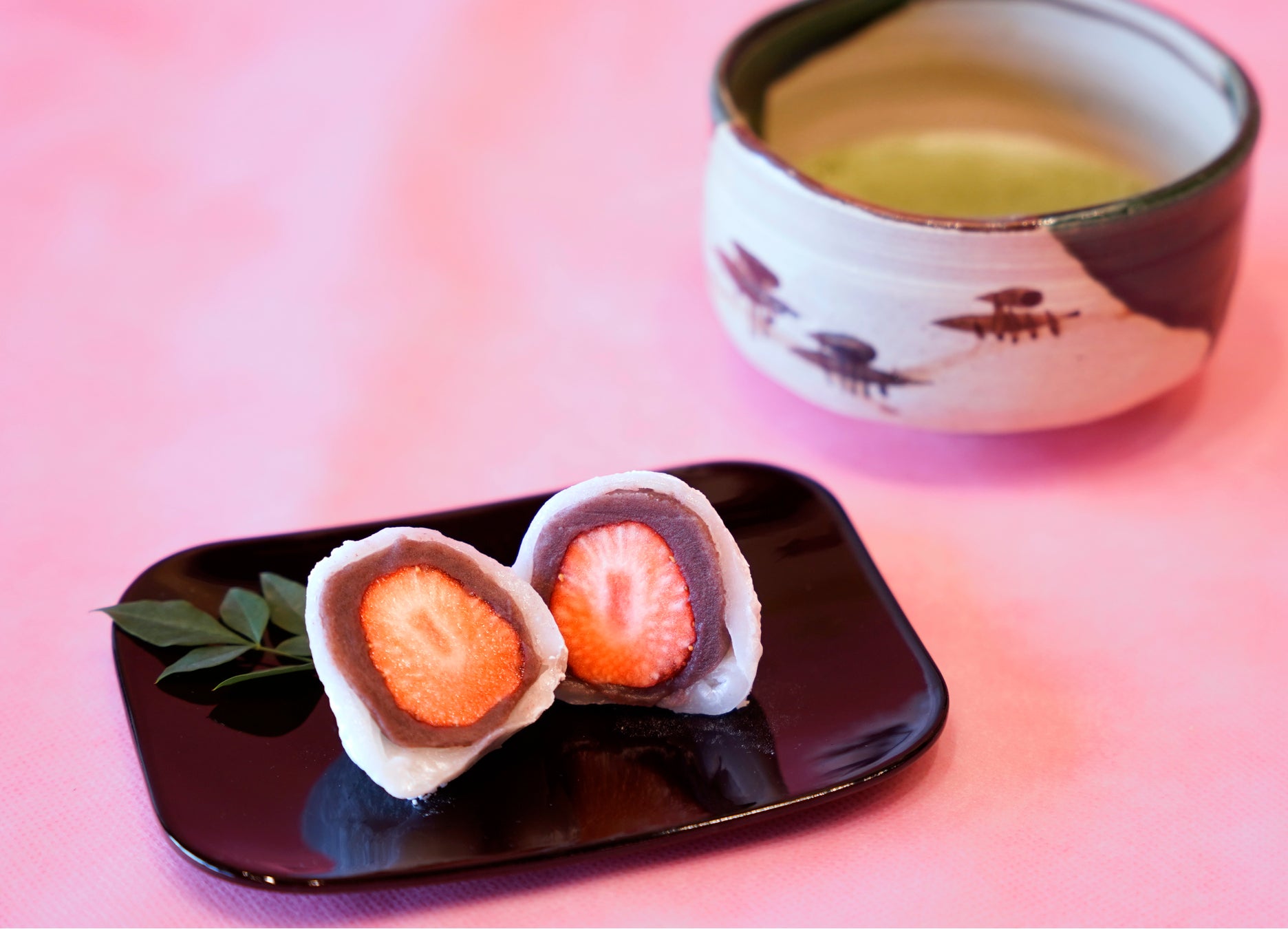 - 大粒の苺を柔らかな求肥で包んだ自家製の大福