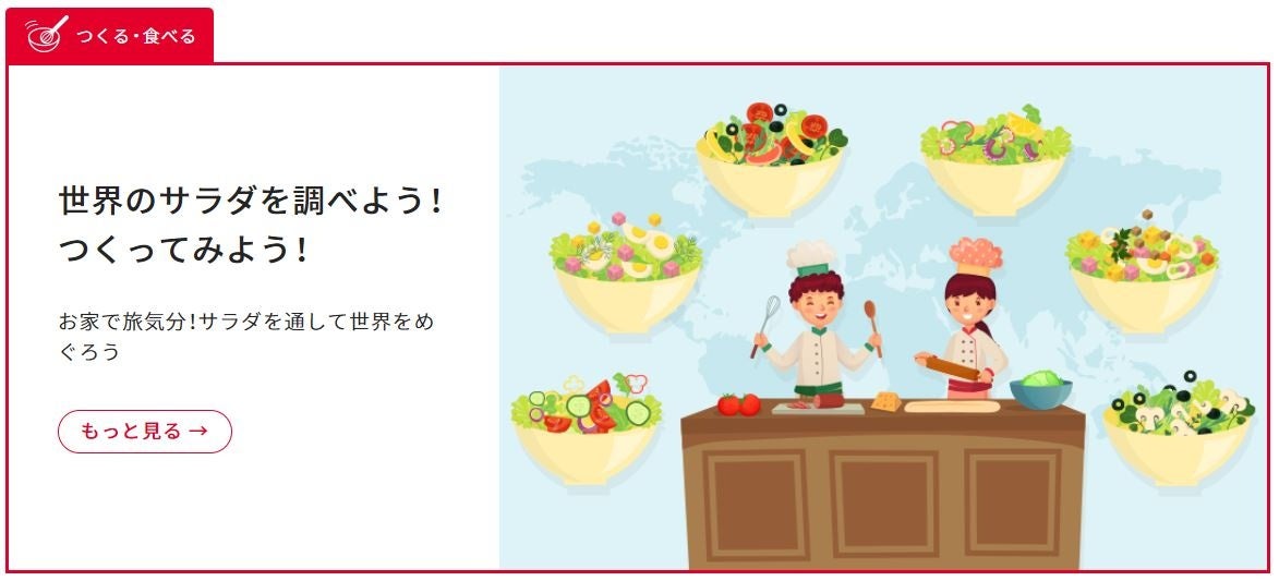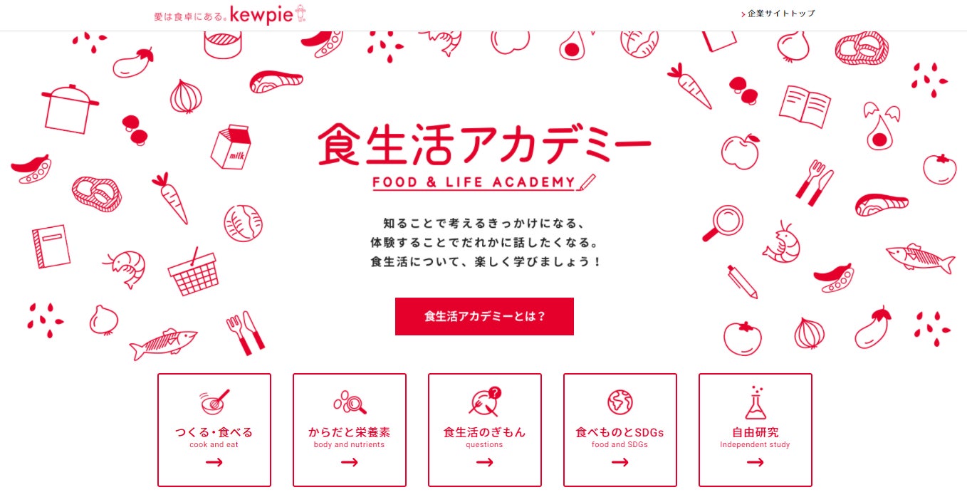 | キユーピー食生活アカデミー 『食生活アカデミー』は、小学校高学年から中学生を対象に、未来を創る子どもたちが、食の知識や体験を通して生活を豊かにし、新たな関心や興味につなげ、将来に役立ててほしいという思いで制作した食育のためのコンテンツです。今後も随時情報を追加し内容を充実させていきます。 |