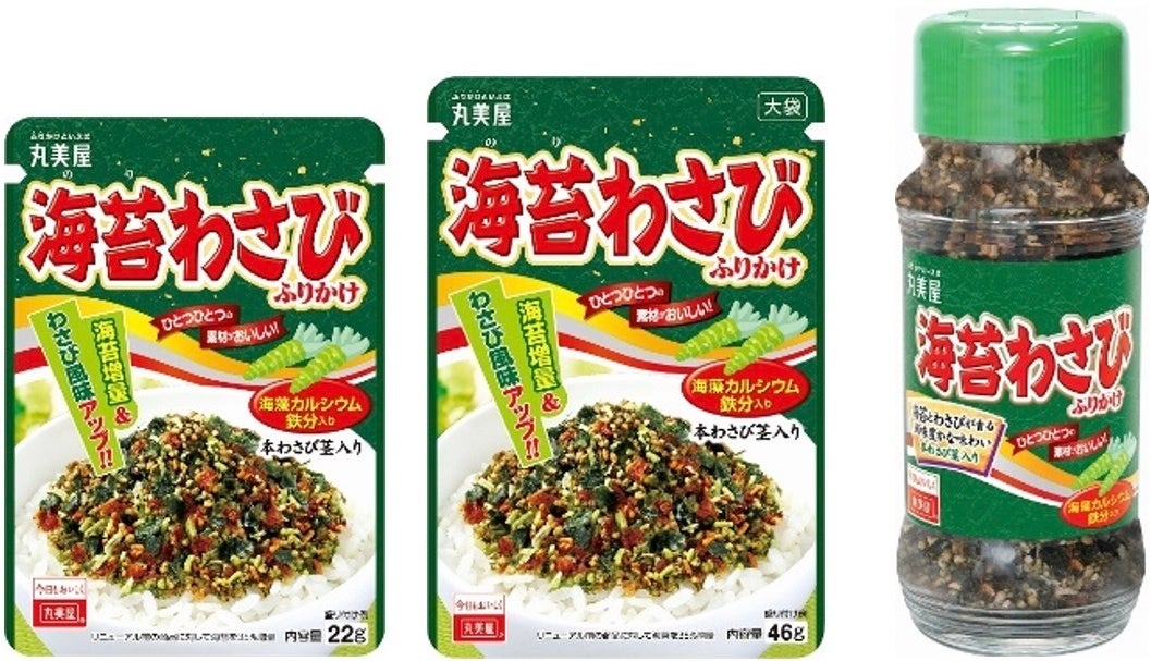 丸美屋食品工業株式会社(本社:東京都杉並区、社長:阿部豊太郎)は、「海苔わさびふりかけN.P.」「海苔わさびふりかけ大袋」「海苔わさびふりかけ瓶入」を2023年2月よりリニューアル発売いたします。