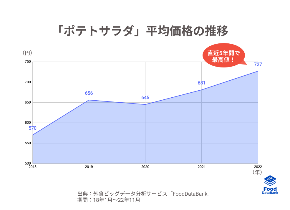 - 「ポテトサラダ」の平均価格が直近5年間で最高額に