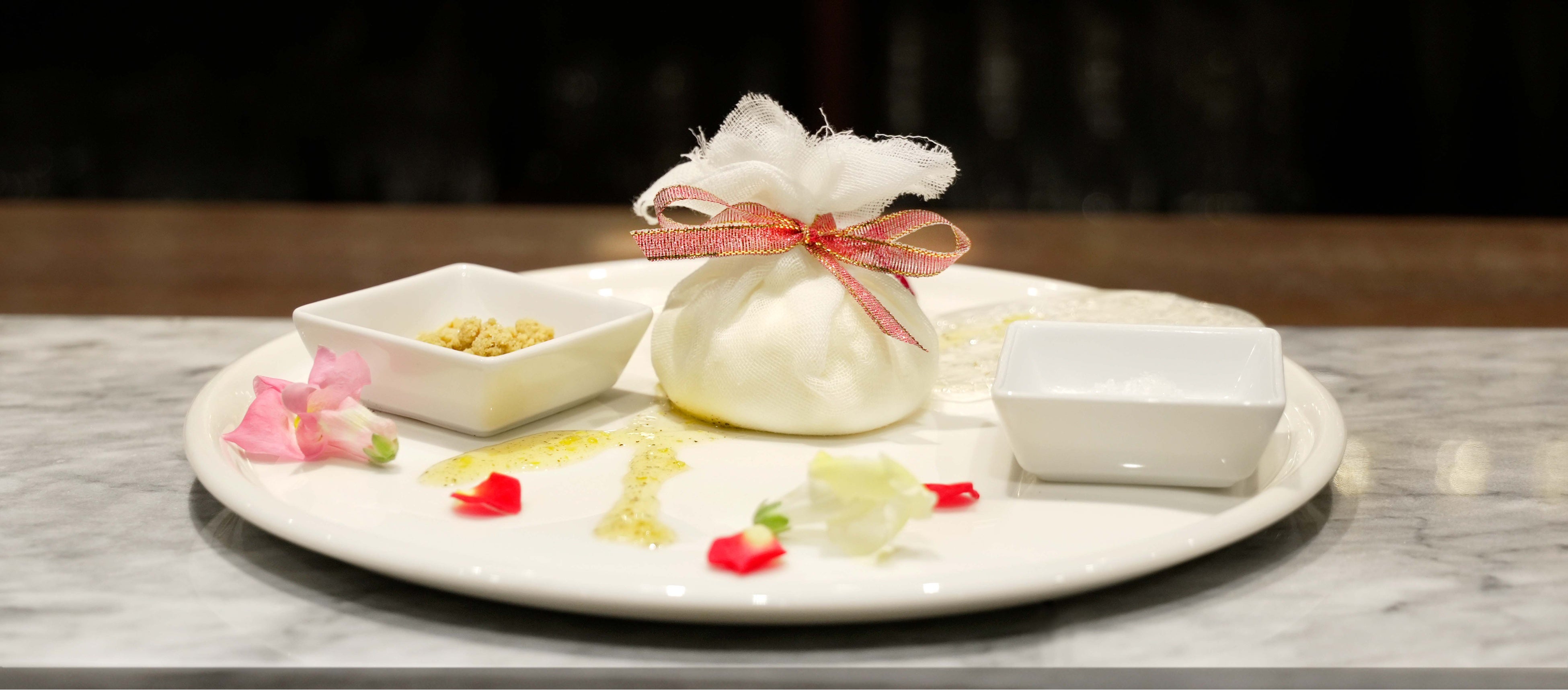 コース料理の〆スイーツとして、チーズクリームの中に梅ジュレを包んだ、新感覚のさっぱり濃厚なチーズケーキ「梅の半生スイーツ クレームダンジュ」。カットすると中から梅ジュレがトロッと流れ出ます。アクセントに添えた塩とシュトロイゼルで味変もお楽しみいただけます。〆のミクソロジーノンアルコールカクテルとして、梅の酸味を効かせつつジュニパーベリーやグローブ、ジャスミンなど女性にうれしいスパイスやハーブをアクセントにした「Rapunzel(ラプンツェル)」、梅シャーベットと紫蘇ジュースのコントラストが鮮やかな「紫蘇香る梅スカッシュ」、梅と相性の良いマンゴーにヨーグルトを組み合わせた「梅マンゴーラッシー」の3種類をご用意しました。
