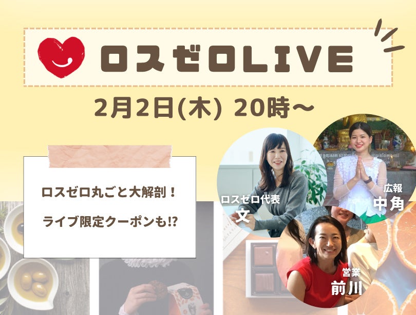 もったいない食品を活かし、エシカルな消費スタイルを創造する株式会社ロスゼロ(大阪市西区、代表 文美月)は2月2日(木)より初のインスタライブを行い、生活者へ楽しく食品ロスの削減を提案します。