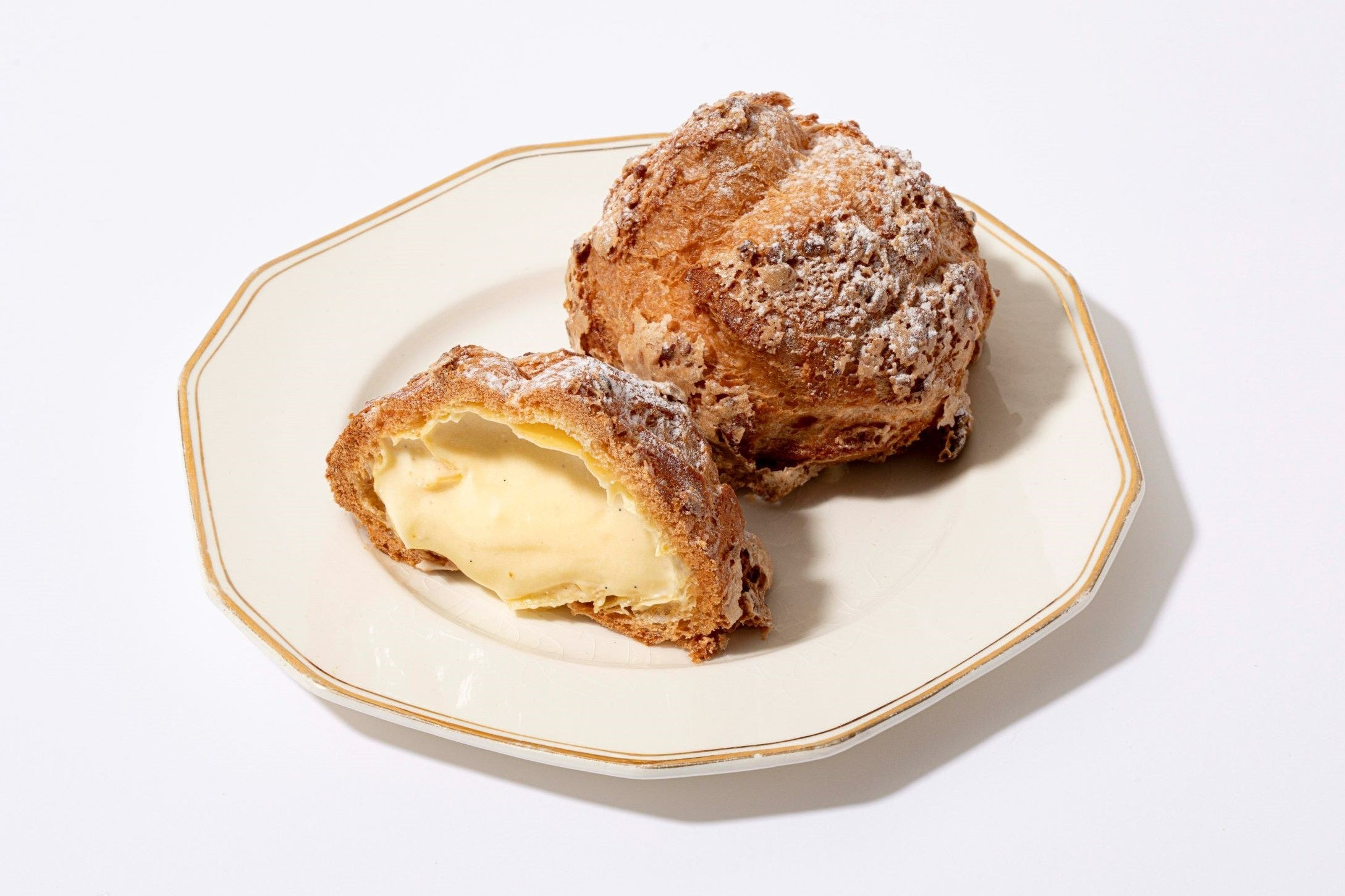 カスタードプディング、カスタードクリーム、クレーム・シャンティーという贅沢な組合せのシュー・クリーム。