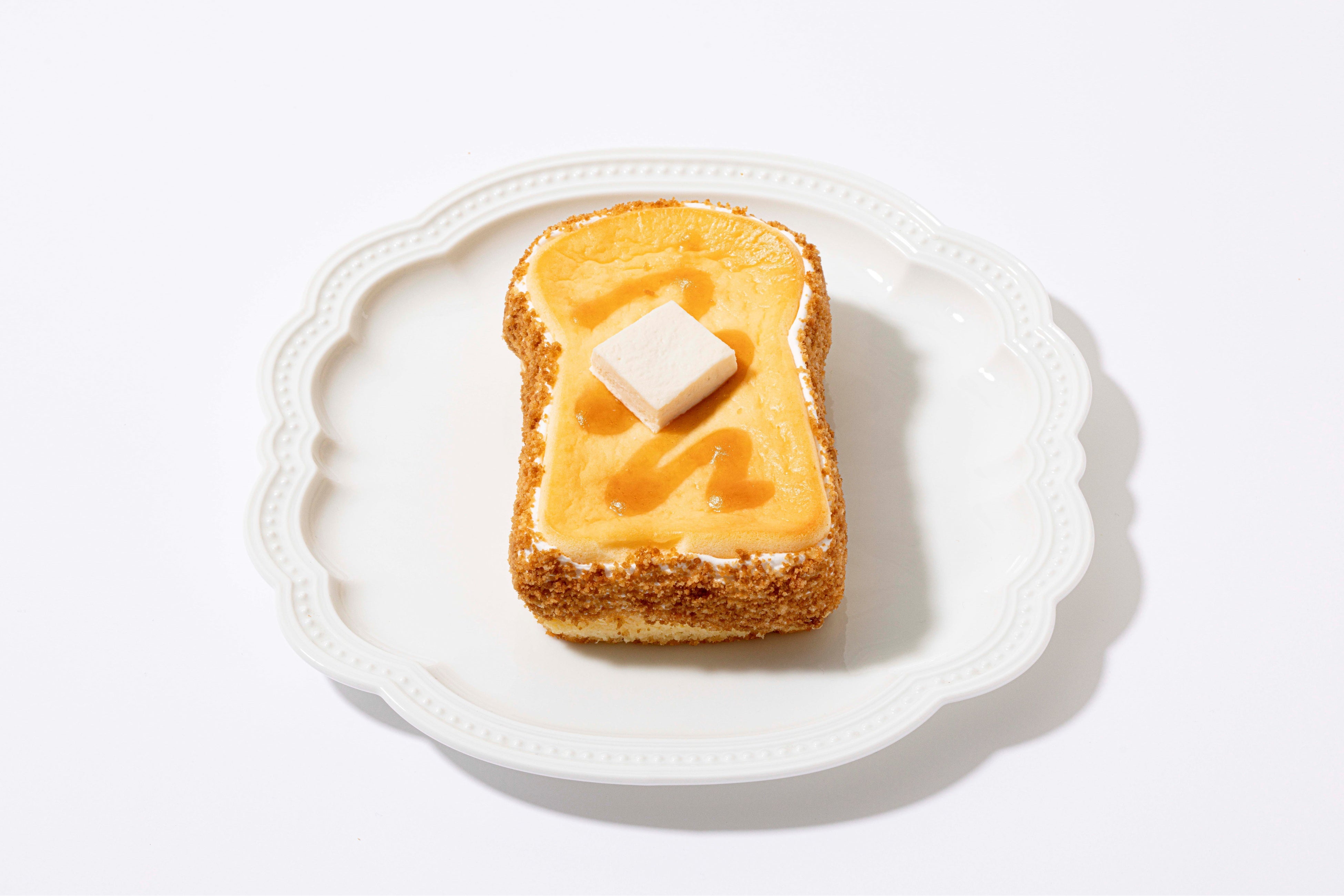 阿蘇・ジャージ牛乳を使ったコク豊かなカスタードを包んだスフレチーズケーキです。パン粉をブレンドしたクラムに、メープルソースとバター風味のホイップクリームでデコレーション。フレンチトースト型のユニークな1品です。
