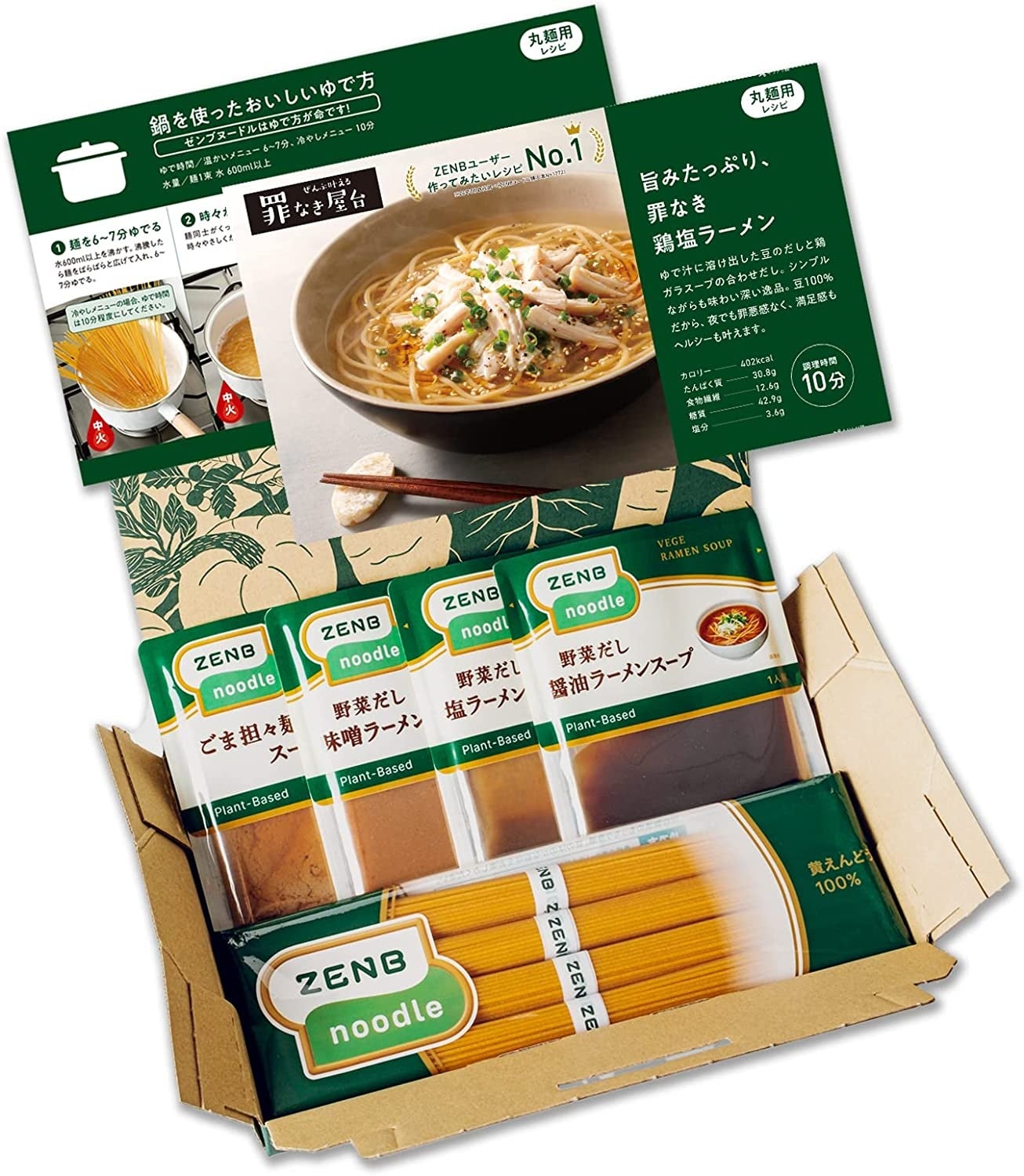 ZENBヌードル1袋、ラーメンスープ4袋(野菜だし醤油、野菜だし塩、野菜だし味噌、ごま担々 各1袋)
