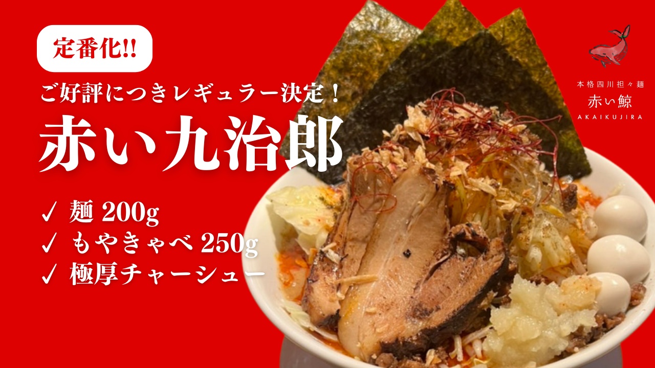 株式会社クロコ(本社:東京都中央区、代表取締役:田中貴紀)が運営する「四川担々麺 赤い鯨(赤坂店・人形町店)」では、期間限定販売した超ボリューム満点なインスパイア系スペシャル担々麺「赤い九治郎」がご好評につきレギュラー販売が決定しました。