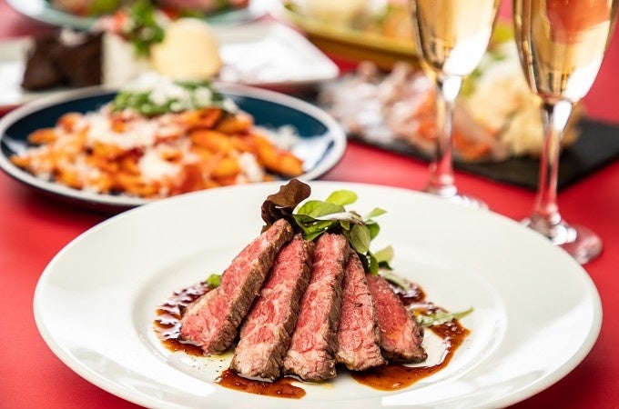 生ハム盛りや工夫を凝らしたサラダ、ネギトロは和風タルタルでkawara風にアレンジを加えました。メインは赤ワインのソースで上品にいただくビーフステーキをご用意。また、お料理に加え、ウェルカムドリンクとしてスパークリングワインを、デザートにはバレンタインにふさわしい限定スイーツと、全9品の魅力的なプランをご用意しました。