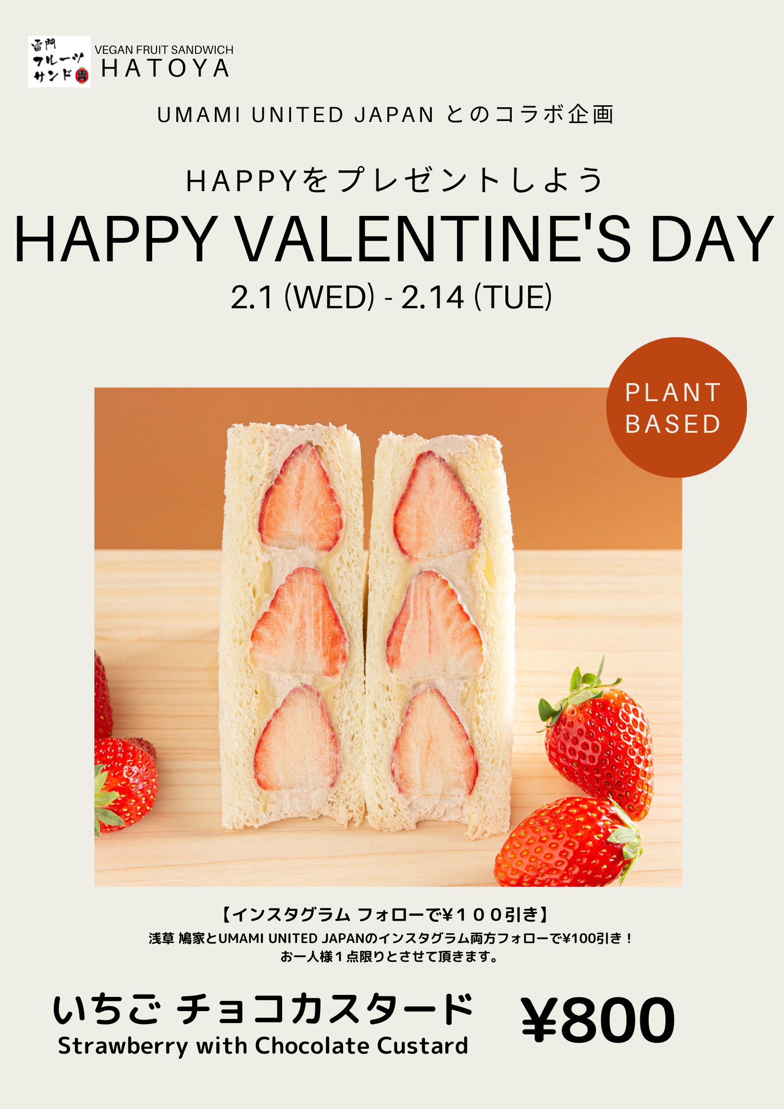 植物性たまごの開発及び販売を行うUMAMI UNITED JAPAN株式会社(本社:日本、代表取締役 山崎 寛斗)は2023年2月1日より、有限会社大華企画が手がけるヴィーガンフルーツサンドの専門店「浅草 鳩家」にて弊社商品「らくぷりんミックス」が導入されることをお知らせいたします。また対象期間中、浅草 鳩家ではInstagramをフォローいただくと該当商品が100円引きになるキャンペーンも実施いたします。