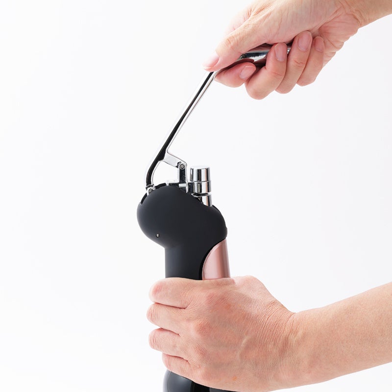 一般的なソムリエナイフや、力が必要な従来のオープナーは、慣れていない方には取扱いが難しく、「ワインは開けるのが面倒だ」「スクリューキャップ以外のワインは買いづらい」というハードルになっていました。