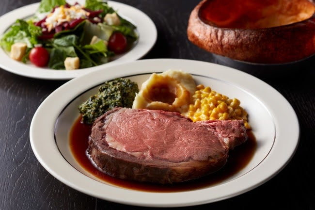 ロウリーズのプライムリブは、米国産ブラックアンガスビーフを使用。 低温でじっくりとローストし、余分な脂を抜き旨みを凝縮させた逸品です。するっとナイフがはいるほどの柔らかさ、だけど口に入れた時は肉本来のしっかりとした繊維質が感じられ、ジューシーな味わいがほとばしり、これぞお肉だという醍醐味が味わえます。添えられたソースは、牛の骨でダシをとったオ・ジュソース。深い味わいのソースがお肉を引き立てます。