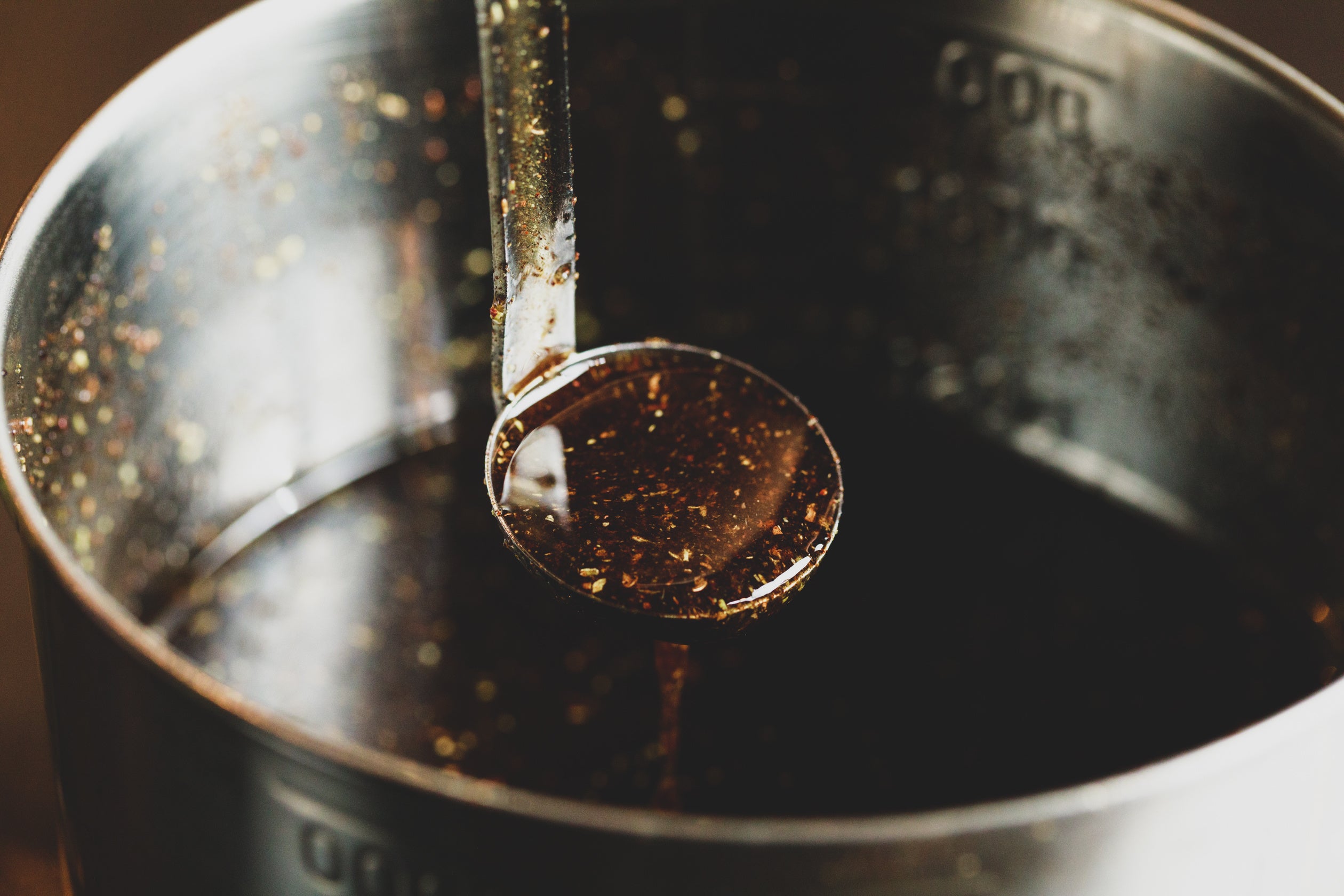 最高級の和歌山産ぶどう山椒と四川産花椒に香味野菜を加え、低温でじっくり加熱して作り上げた香り豊かな痺れ油。