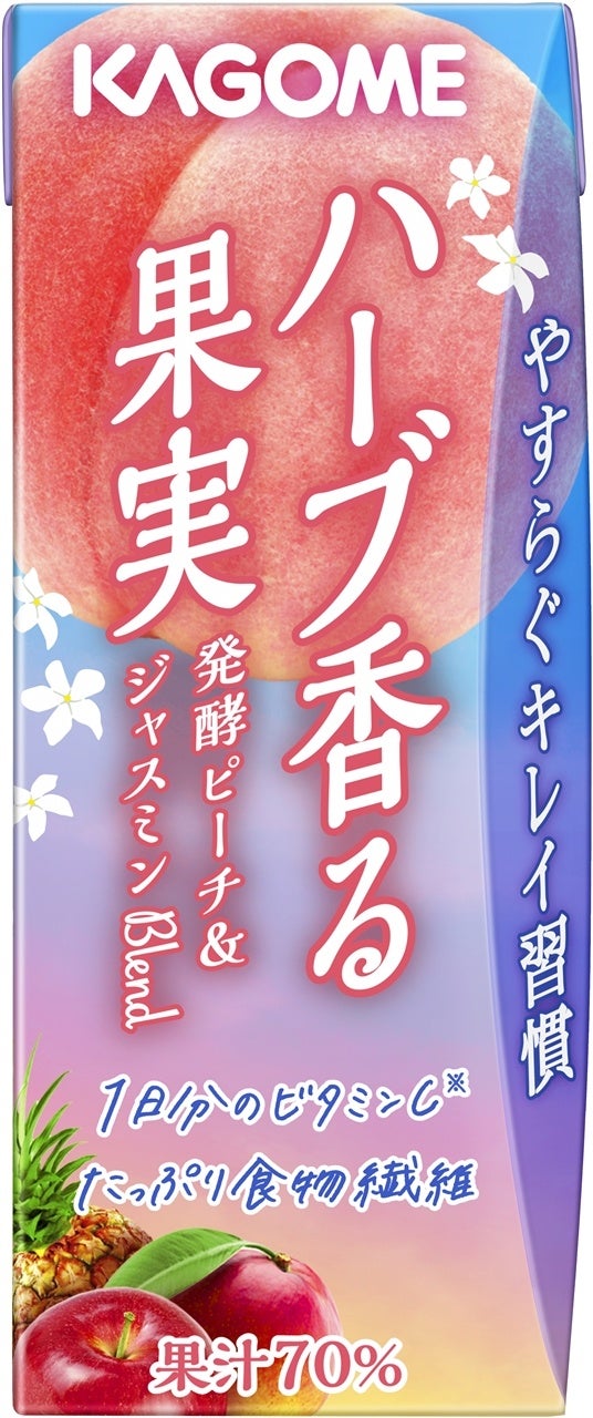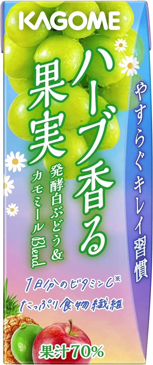 「ハーブ香る果実」は、発酵果実とフルーツとハーブをブレンドした70%混合果汁入り飲料です。「ハーブ香る果実 発酵白ぶどう&カモミールBlend」は白ぶどうの発酵果汁を、「ハーブ香る果実 発酵ピーチ&ジャスミンBlend」はももの発酵果汁を使用しています。体に嬉しい1日分のビタミンC(※)とたっぷり食物繊維が摂れ、心やすらぐハーブの香りとすっきりとした味わいが特長です。砂糖不使用ながらも、ブレンドにこだわり、甘さひかえめなフルーティーテイストをお楽しみいただけます。おいしく手軽に飲めて、毎日のキレイ習慣にぴったりの新商品です。夜のリラックスシーンのおともにおすすめです。