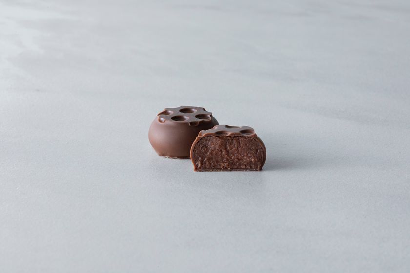 杏子ピューレとカカオ37%ミルクチョコレートで組み上げました。杏子の強い酸味がミルクチョコレートの甘さと調和して、爽やかな香りが特徴の一粒です。