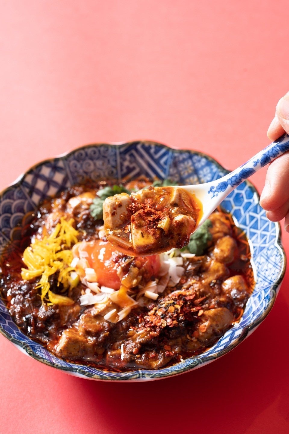 ブラザー豆腐™の名物は、自慢の京豆腐、秘伝の辣油、自家製の醬(ジャン)が織りなす本格四川風麻婆豆腐です。麻婆豆腐を楽しむために開発された8種の薬味をお好みでトッピングでき、アツアツご飯と合わせてお召しあがりください。