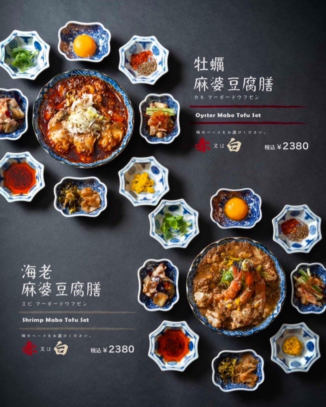 【更に+500円で海老、牡蠣が麻婆豆腐にトッピング可能】