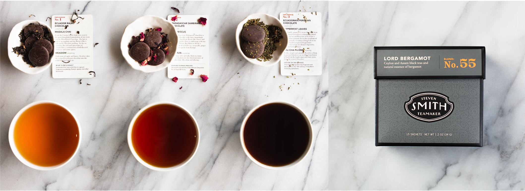 大胆で独特なものから繊細で複雑なものまで、様々な味わいと香りがスミスの旅に連れ出してくれるアソートメント「スミス バラエティ」。チョコレートとのペアリングにもおすすめなブレンドとしてご紹介させていただいた「ロード ベルガモット」「ブラック ラベンダー」「ジャスミン シルバー ティップ」「ローズシティ ゲンマイチャ」「メドウ」も入った、紅茶・緑茶・ハーブティーの合計12種類のアソートメントは、バレンタインギフトにはもちろん、気分やシーンによって色々なティーを楽しみたい方や、色々なフレーバーを試してみたい方におすすめです。