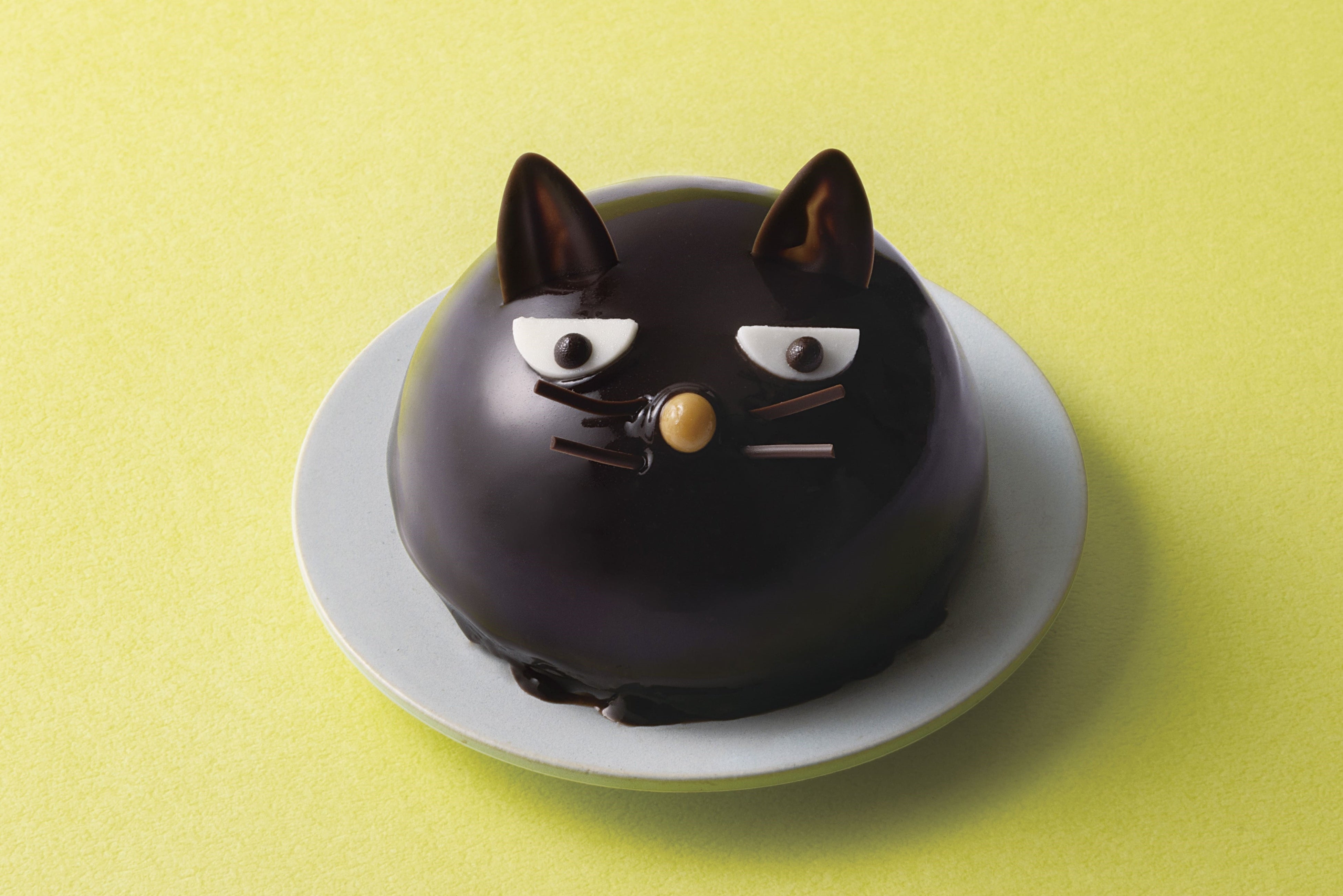しっとりとした食感のケークショコラにまろやかなミルクチョコレートを重ねたショコラムース。可愛らしい黒ねこのケーキに仕上げました。