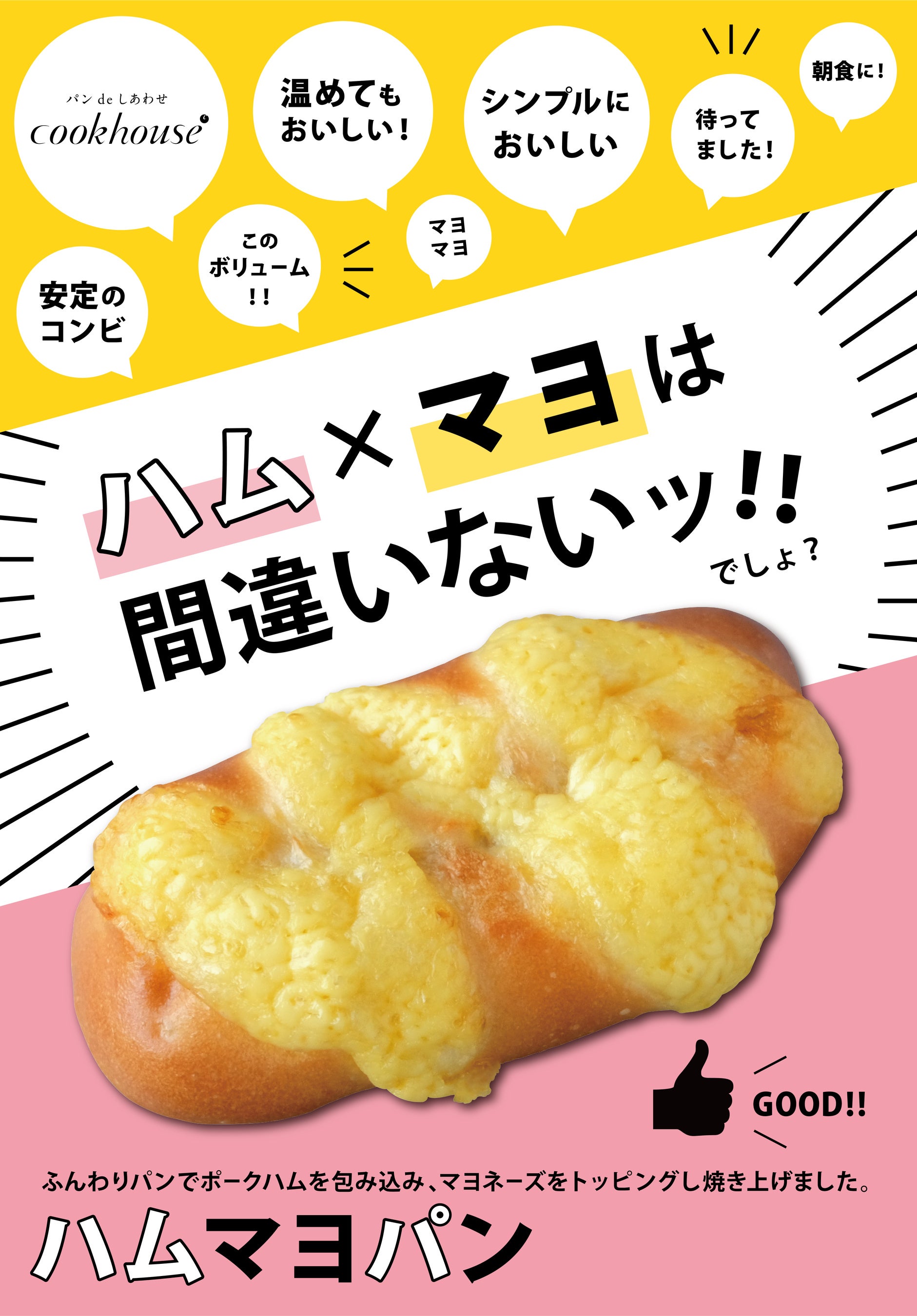 ふんわりパンでポークハムを包み込み、マヨネーズをトッピングし焼き上げました。