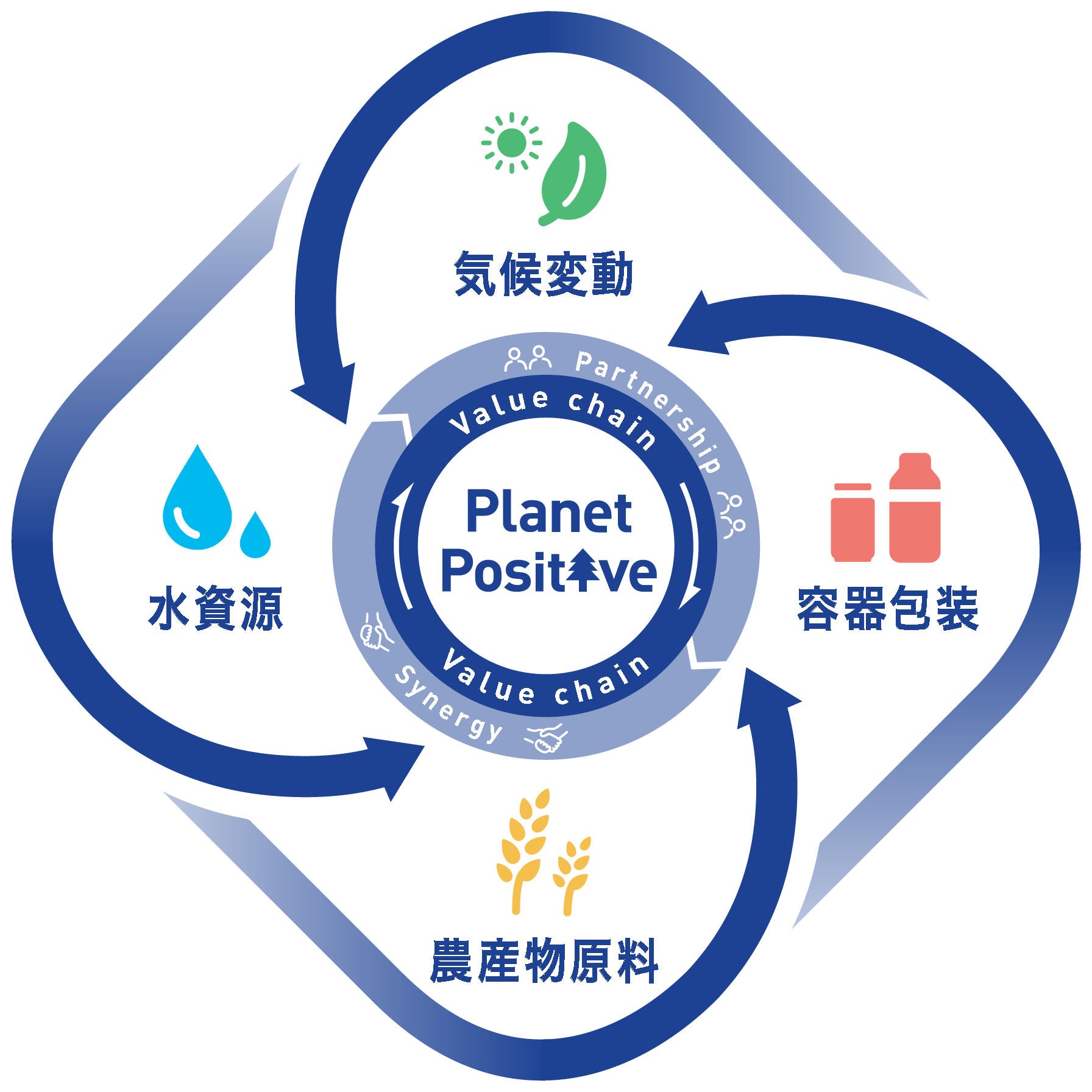アサヒグループは、100年以上にわたり自然の恵みを享受し商品・サービスを提供してきた企業として、地球環境問題の深刻化により、このままでは事業の持続可能性のみならず人類の存続までも脅かされていることに危機感を持っています。自然の恵みなくして私たちは事業を継続できないため、事業による環境負荷をゼロにし、循環を通して地球環境への価値を最大化するプラネットポジティブの達成を目指します。