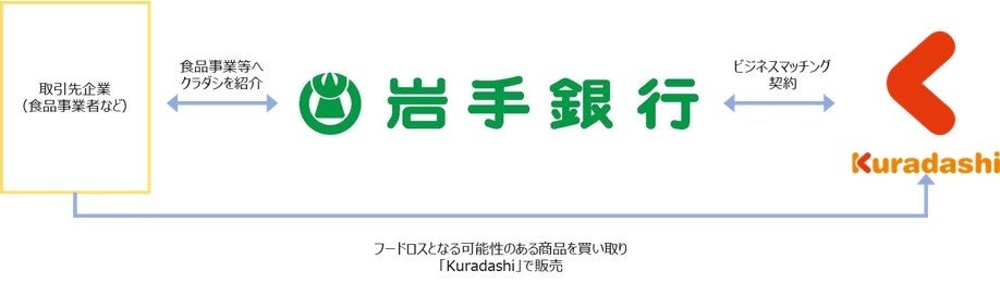 ソーシャルグッドマーケット「Kuradashi」を運営する株式会社クラダシ(本社:東京都品川区、代表取締役社長:関藤竜也、以下「クラダシ」)は、株式会社岩手銀行(本店:岩手県盛岡市、代表取締役頭取:岩山徹、以下「岩手銀行」)とビジネスマッチング契約を締結し、東北エリアのさらなるフードロス削減を目指します。クラダシとして、東北エリアの金融機関との業務提携は岩手銀行が初めてです。