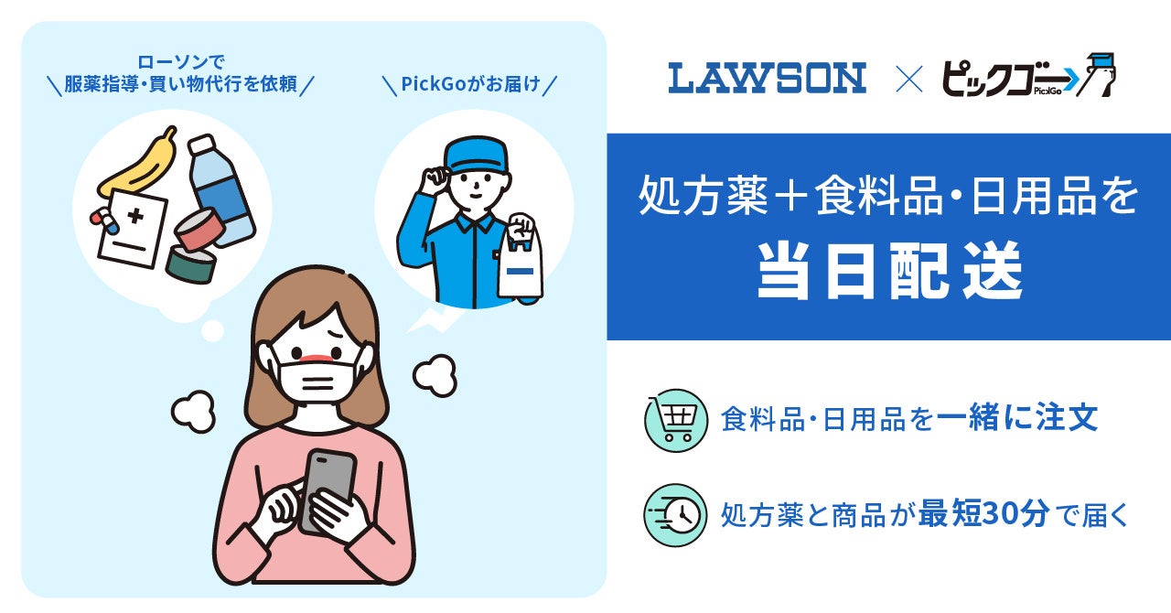 今回実証実験を実施するローソン荏原町駅前店では、これまで処方薬の宅配を希望される利用者には最短翌日にお届けを行っていました。このたびの実験では全国6万人の配送パートナーが登録し、即日配送に強みを持つ「PickGo」がデリバリーを担うことで、最短30分でのお届けを実現します。