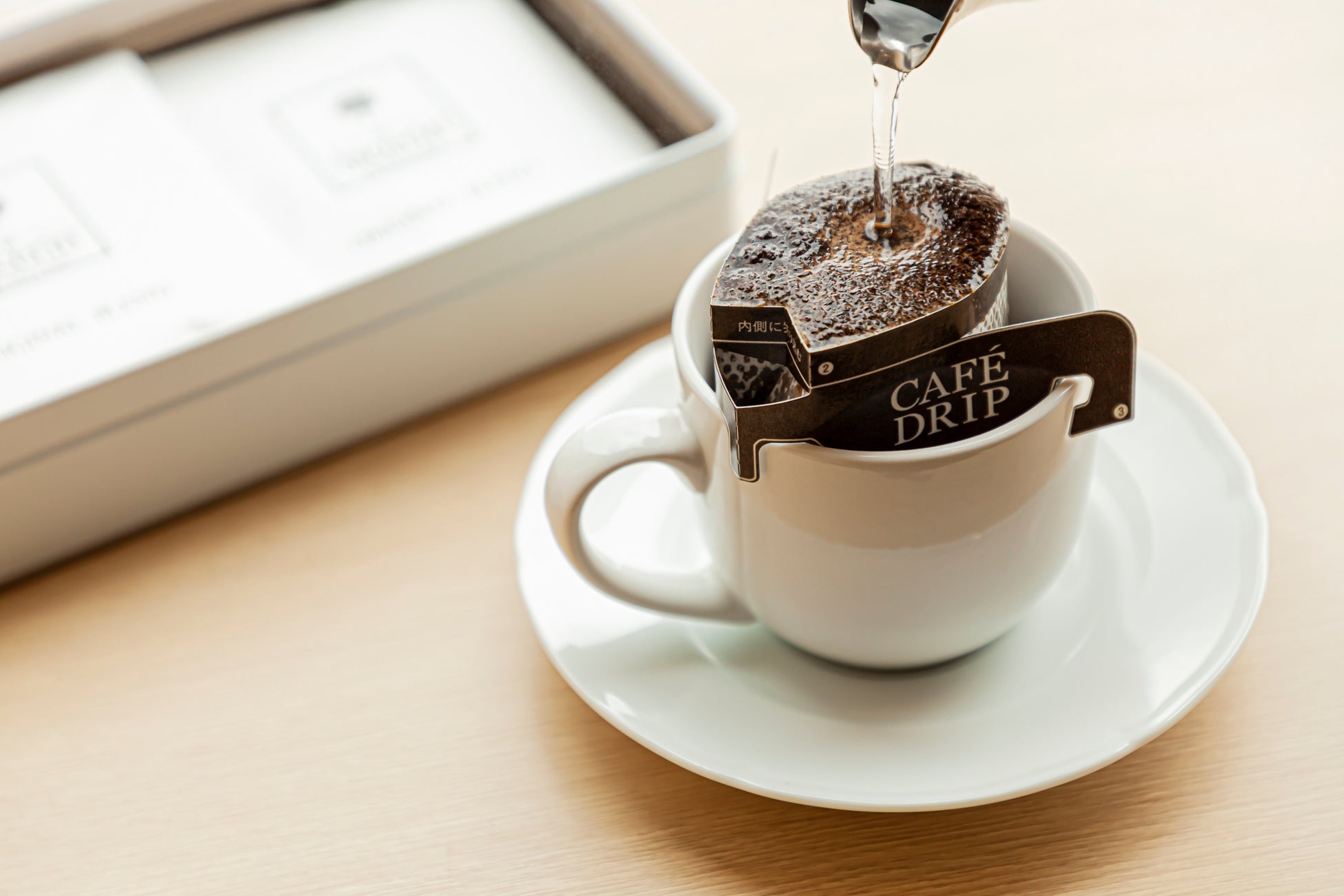 柑橘系の酸味やナッツのフレーバーに、余韻にはドライフルーツやチョコレートのような甘みと程よい苦みが口の中にバランスよく残るようにブレンドしたオリジナルドリップ