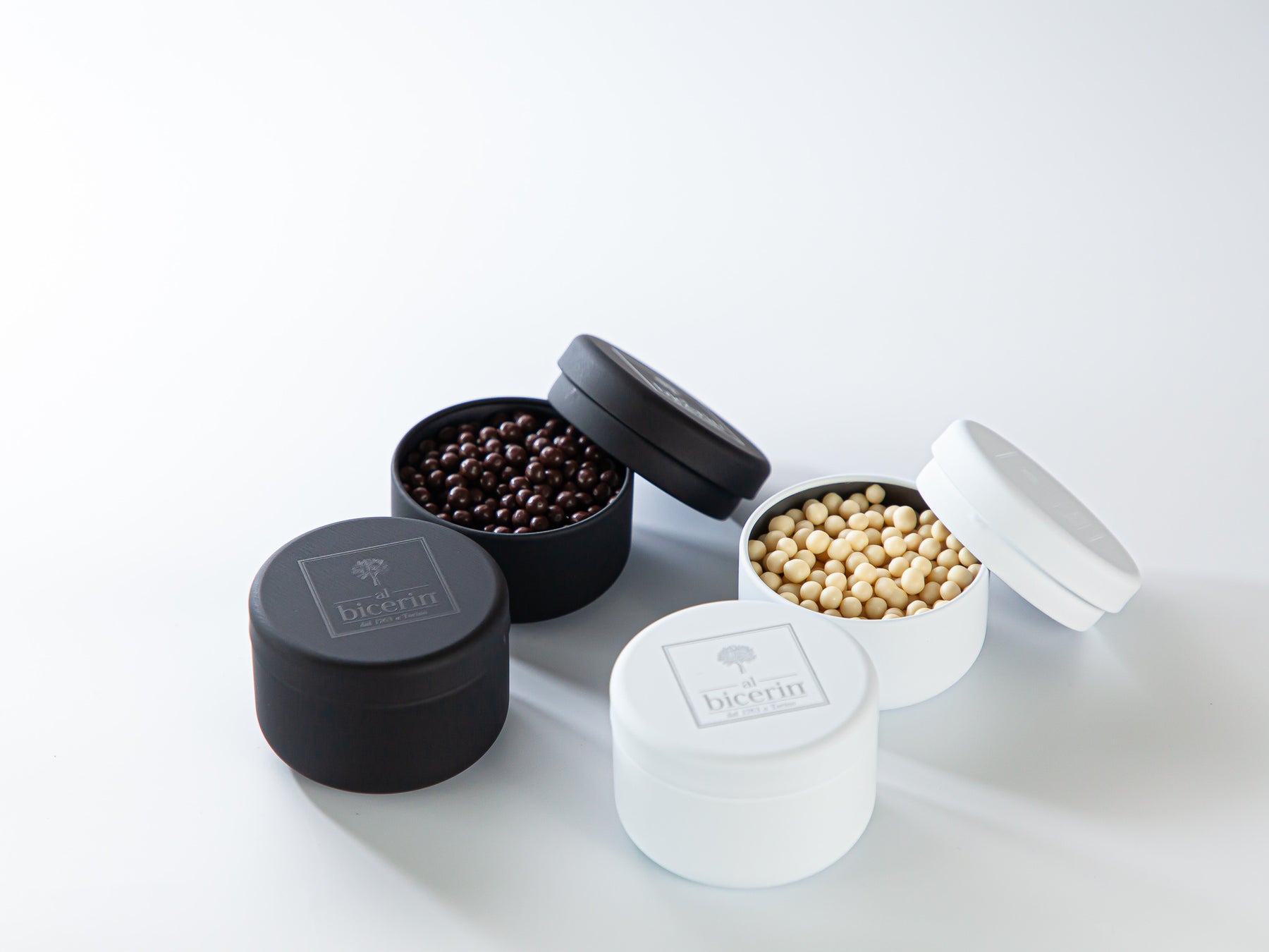 缶を開けるとまるでキャビアのような詰め合わせのチョコレート「キャビアーレ」(ダーク/ミルク)