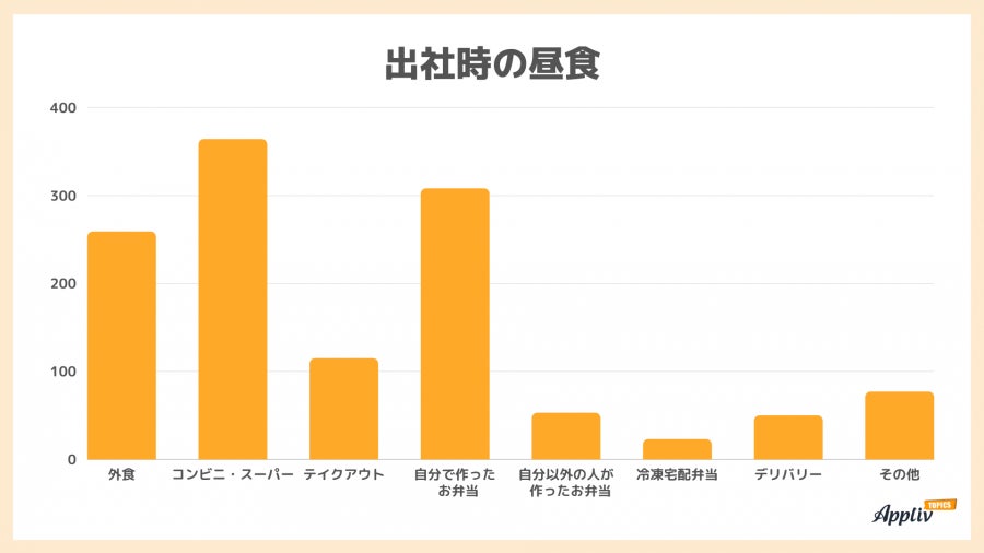 「Appliv TOPICS」ではインターネット調査サービスを通して、一人暮らしの会社員20~59歳の男女825人を対象に、勤務時の食生活に関するアンケートを実施いたしました。