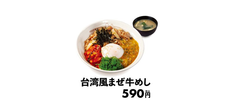 | 商品名 台湾風まぜ牛めし 590円 台湾風まぜ牛めしライス大盛 650円 ※お持ち帰りいただけます。お持ち帰りにみそ汁は付きません。 お持ち帰りの場合、みそ汁は別途60円でお求めいただけます。 ※税込み価格です。 発売日 2023年2月7日(火)午前10時 ~ |