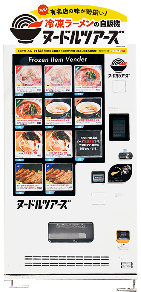 『ヌードルツアーズ』は、全国の各ラーメン店が作ったスープと、厳選した原料と衛生管理を徹底した丸山製麺の製麺所で製造した冷凍生麺を使用したコラボ商品を冷凍で販売しています。自販機や無人販売所で販売しており、24時間いつでも好きな時に購入可能です。スープは湯せん、麺はゆでるだけのカンタン調理で、自宅にいながら日本全国のラーメン屋さんのラーメンを味わうことができます。2021年3月のサービス開始以降、全国のラーメン屋さんと提携し、設置数は日本全国170箇所、販売食数は累計45万食を突破しました。今後も多種多様な業界や企業との連携により成長を続け、全国への設置を目指します。