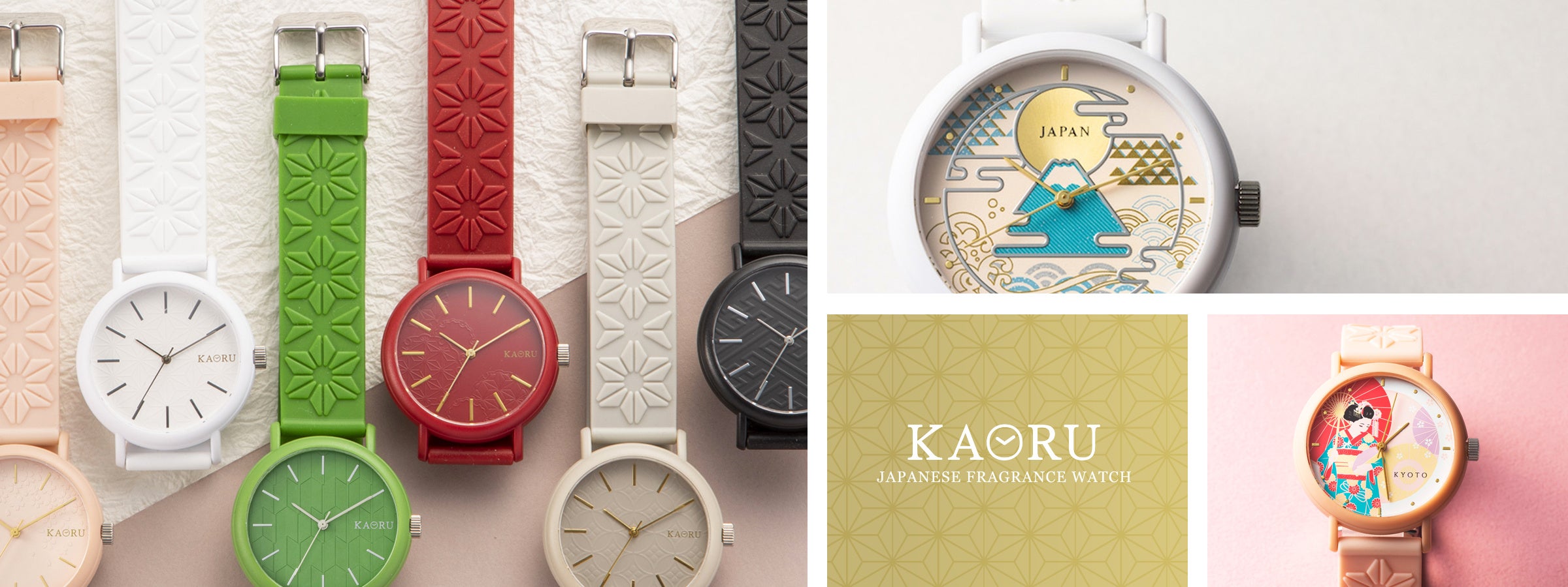 和の香りやスイーツの香りをテーマに、懐かしさや思い出の情景が蘇る、優しくふんわりと包み込むように香りがする腕時計です。日本のものづくりの技術と想い、新しい時計スタイルと楽しみ方を国内外に発信しているブランドです。