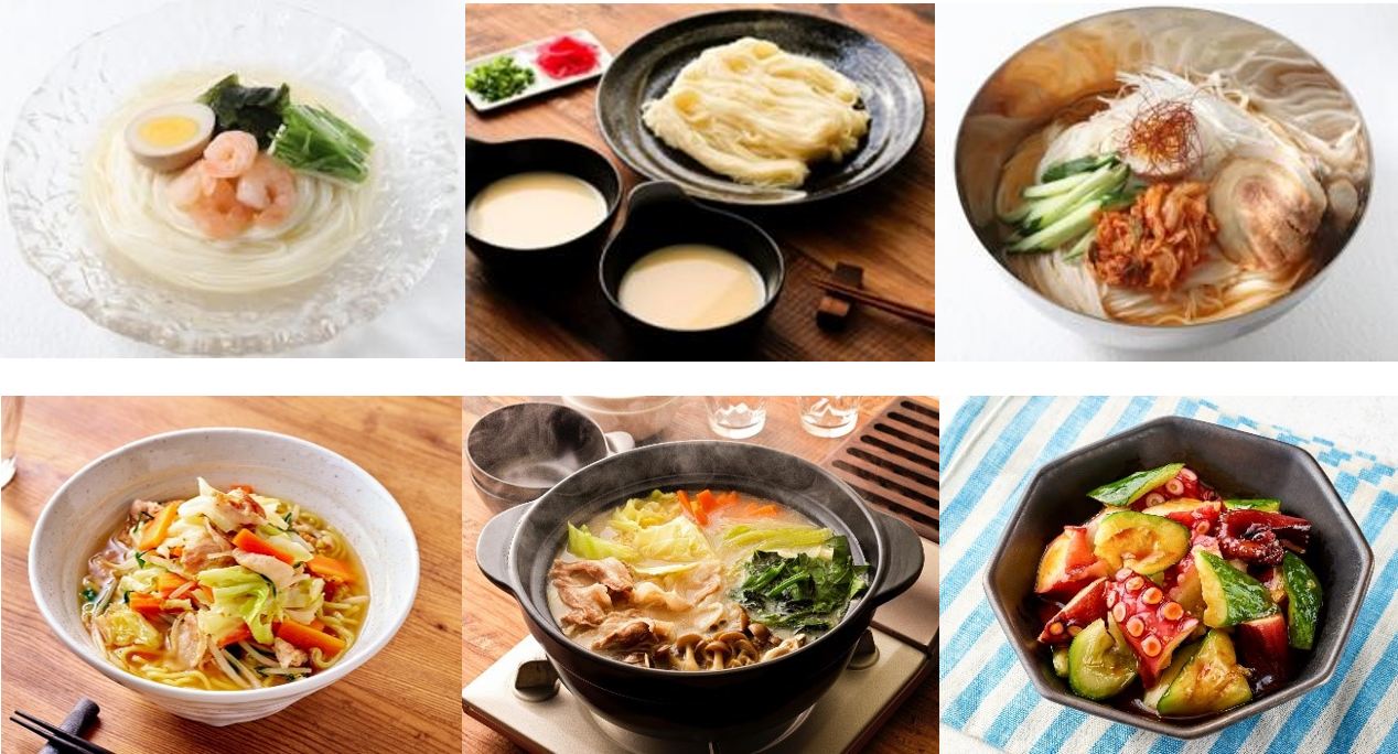 そうめんはコスト・タイムパフォーマンスに優れ、喫食頻度も高まっておりますが、「いつものめんつゆ味」からくる「飽き」を感じている人も多いのではと思います。そのような皆様に、「手軽にいつもと違った味わいでそうめんを楽しんでいただきたい」という想いからご家庭では作りにくい3種のフレーバーをご用意いたしました。そうめん以外にもうどん・ラーメンなど様々な麺メニューをお楽しみいただけます。