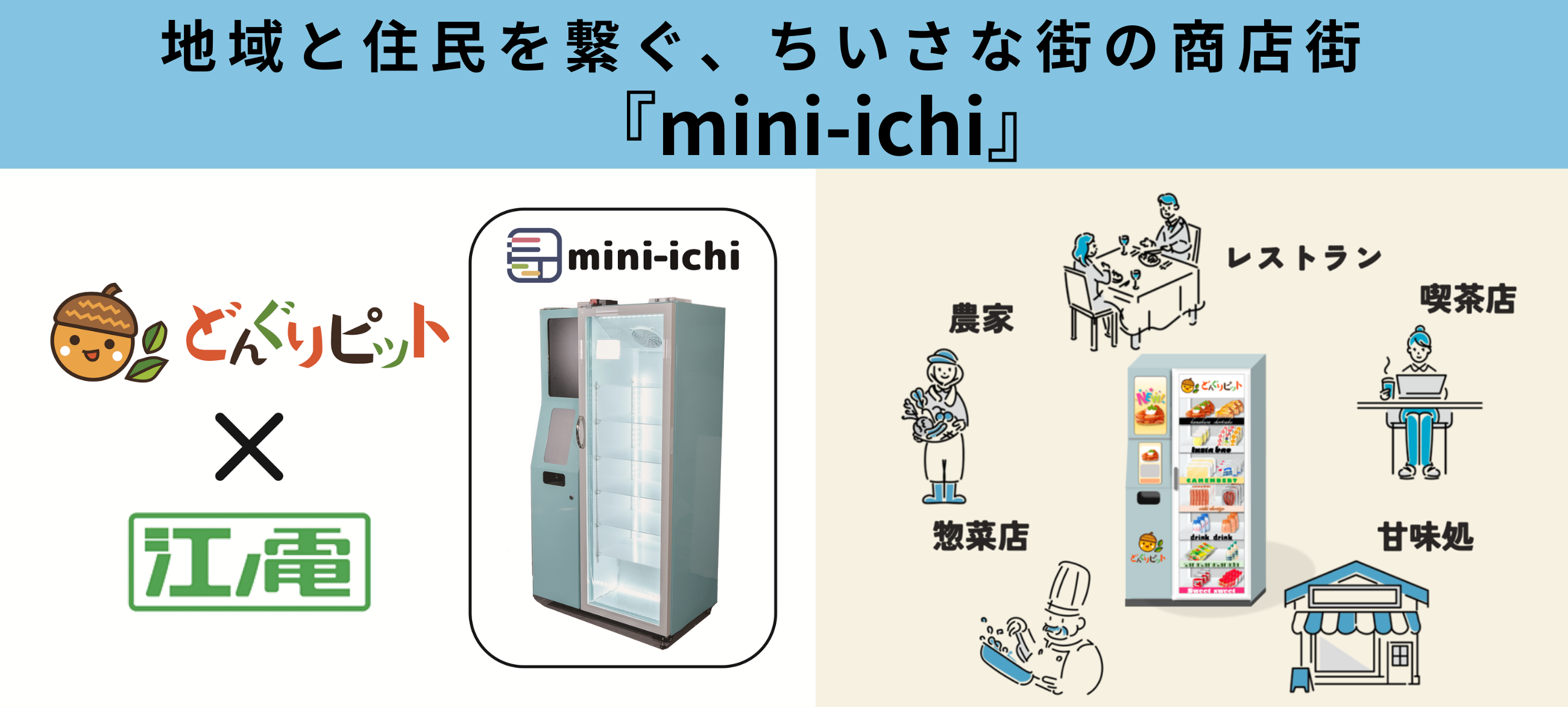 今回の実証実験では、湘南鎌倉地域を舞台に、地元を支える江ノ島電鉄と連携し、主要駅にmini-ichiを設置することで、実際に湘南鎌倉エリアで飲食店舗や農漁業を営んでいる「地域内生産者」が出店者となり、地域住民が商品を購入できる仕組みにチャレンジします。
