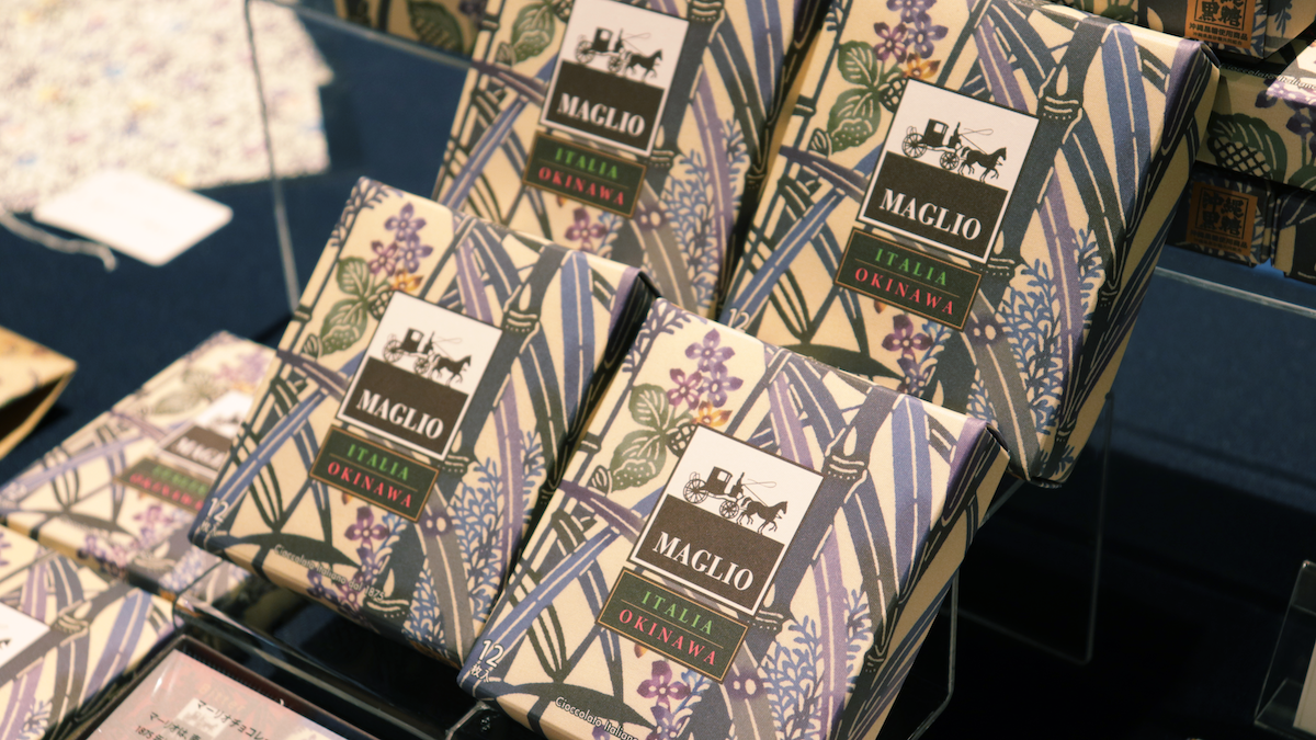 パッケージは、琉球紅型の源流の一つである知念紅型研究所10代目当主知念冬馬氏のサトウキビのデザインです。日本初上陸のマーリオチョコレートと沖縄フレーバーのマリアージュで生まれた、モダン沖縄チョコレートです。