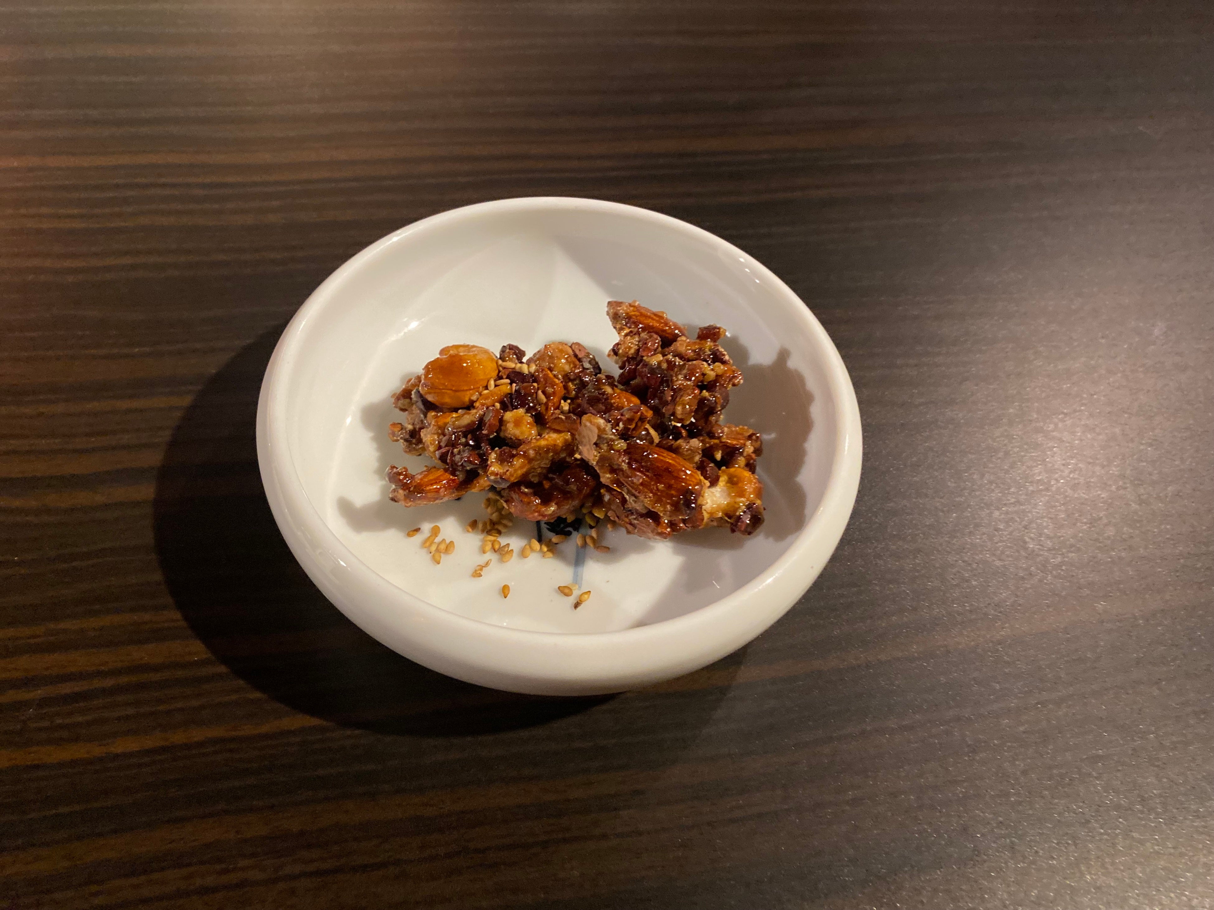 - 特製味噌スープは、特製の味噌ダレにスモークして香りづけしたプラリネを入れて時に深みを演出しています。