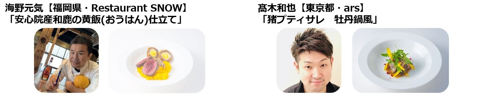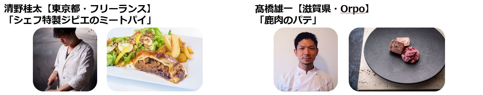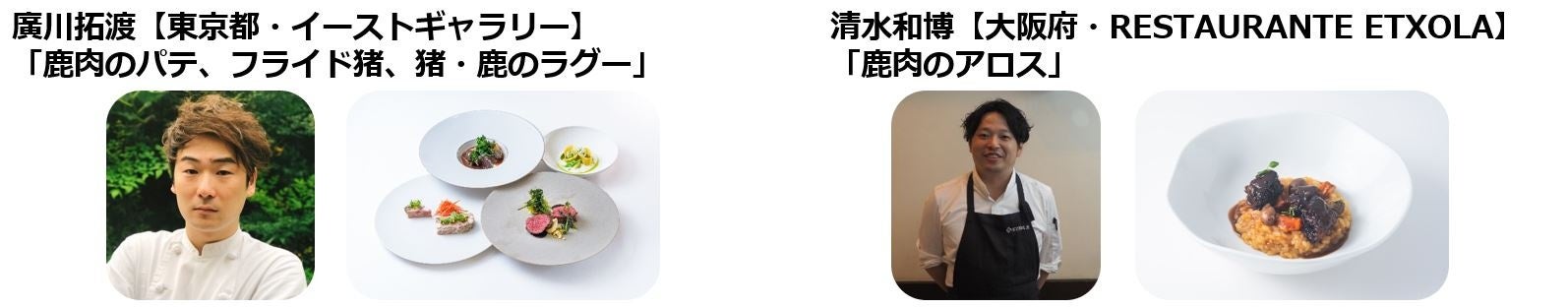 参加シェフ13名はそれぞれの飲食店でジビエメニューを提供するメニューフェアに参加。味だけではなく、ジビエを取り巻く環境やストーリーなどを伝えることでジビエの価値を見直すきっかけづくりになるよう「全国ジビエフェア」内の特設サイトでも本取組を紹介し、情報提供をおこなっています。