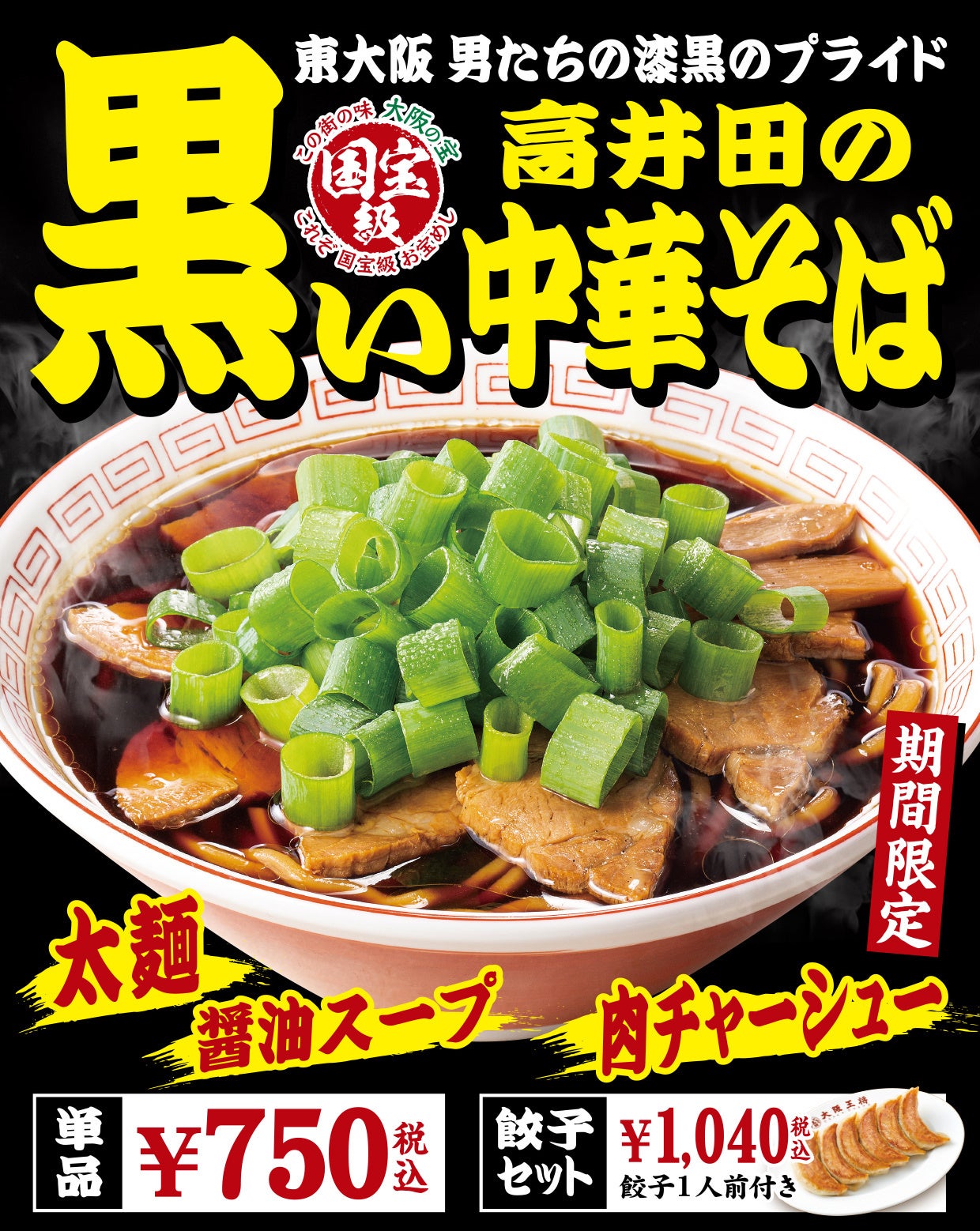 株式会社大阪王将(東京ヘッドオフィス:東京都品川区 代表取締役社長:植月剛)は、餃子専門店「大阪王将」において2023年2月8日(水)、国宝級お宝めし『高井田の黒い中華そば』を期間限定で発売いたします。