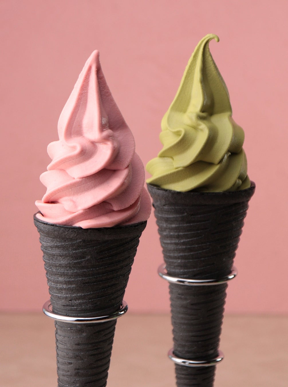 当社のコーンとしては、従来の薄茶色、ココア・チョコ系の濃い茶色、日本を意識した紅白、さらに今回の「黒」となりました。