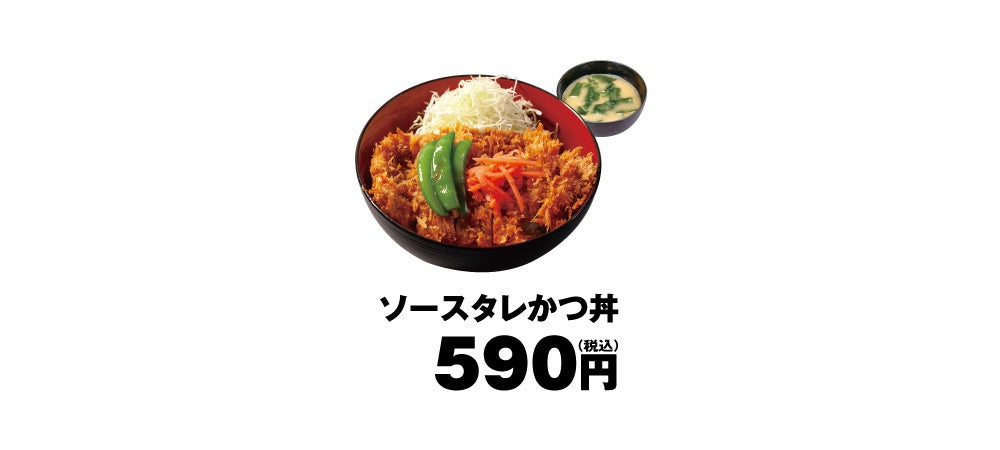 | 商品名 ソースタレかつ丼 590円 ※全て税込価格です。また、店内・お持ち帰りの税込価格は同一です。 ※お持ち帰りいただけます。お持ち帰りのみそ汁は、別途60円でお買い求めいただけます。 発売日 2023年2月8日(水)午後3時 ~ |