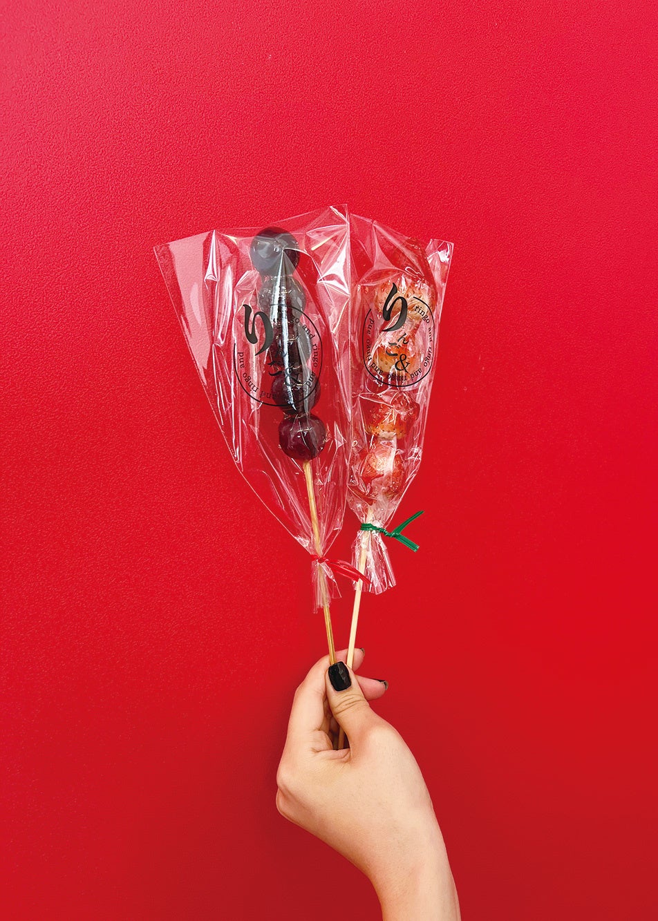 フルーツ飴専門店がオープンしました。旬のフルーツのみずみずしさや甘さを、究極のオリジナルの飴で包み、美味しさを凝縮させたフルーツの最高の味わいを編み出しています。「こんなものも飴になる‼」という驚きの食材を使った新食感もこれから発売予定。美味しさを追求し続け、新しいフルーツ飴のレパートリーがここから広がります。